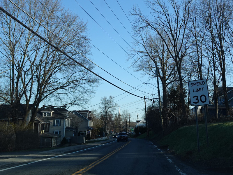 Ludingtonville Road (CR 43) begins on the left. Turn here for access to I-84.