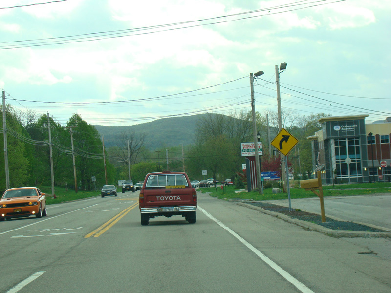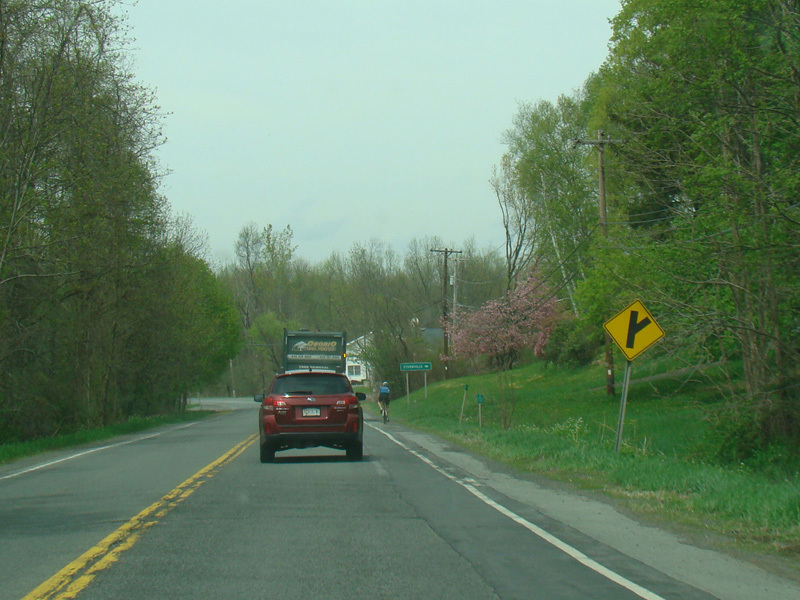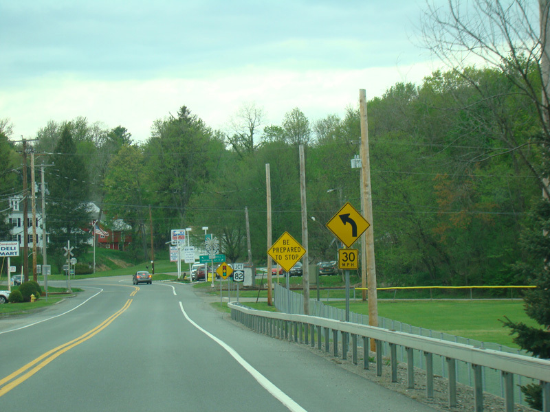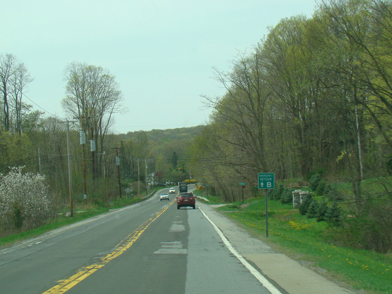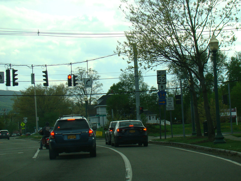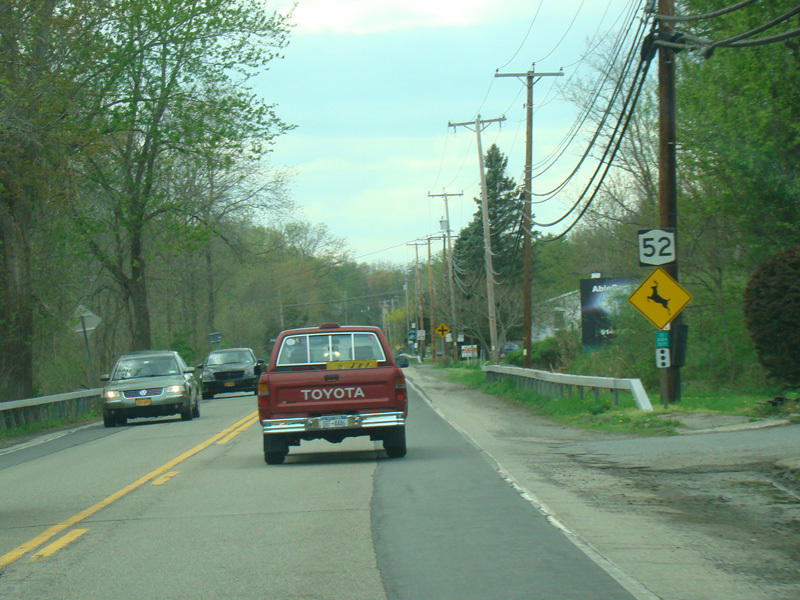 Skipping a few miles, NY 52 runs west as a two-lane undivided road. I-84 passes over NY 52 in this area, but there is no interchange.