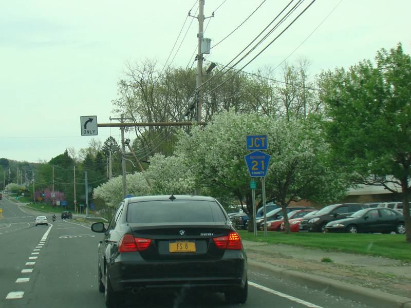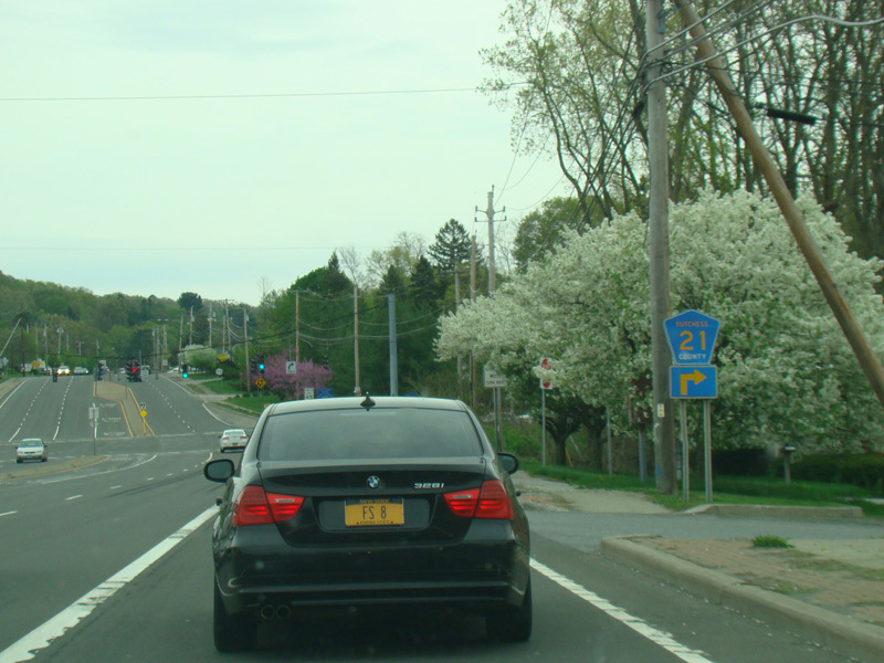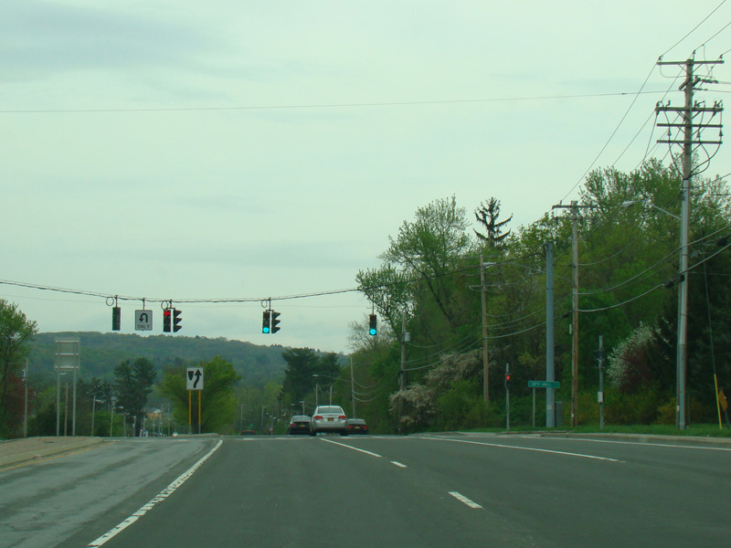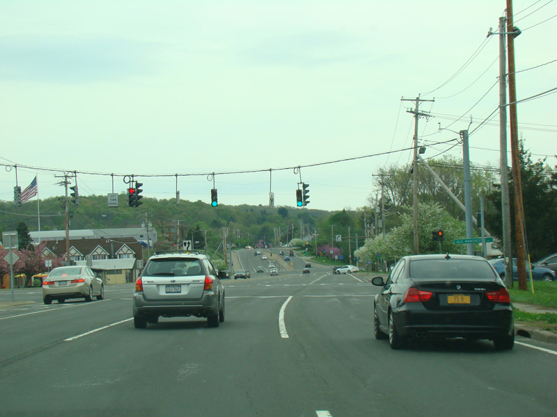 Noxon Road (CR 21) begins on the right at a traffic light.