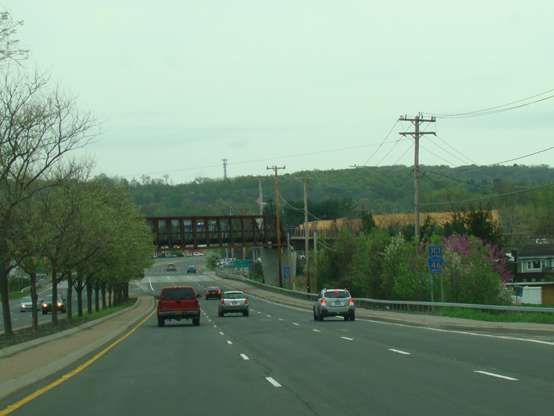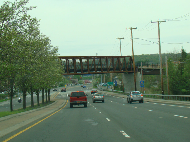 There is a pedestrian bridge carrying the Dutchess Rail Trail over Freedom Plains Road. Immediately thereafter, Overlook Road (CR 46) begins on the left.