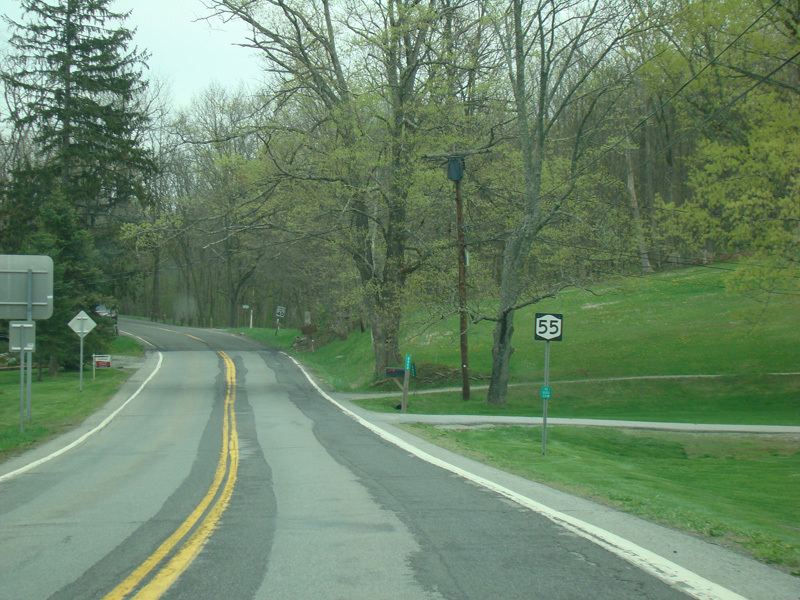 Skipping east to Wingdale, NY 55 splits off from NY 22 runs north as a two-lane undivided road.