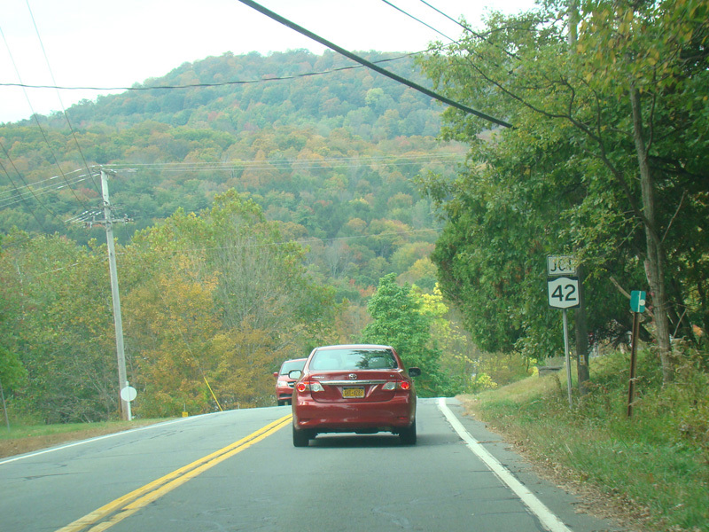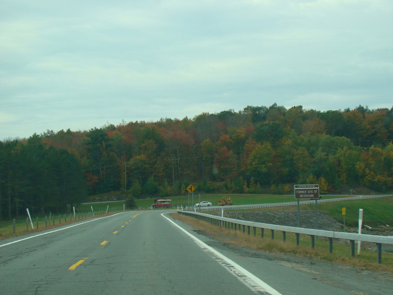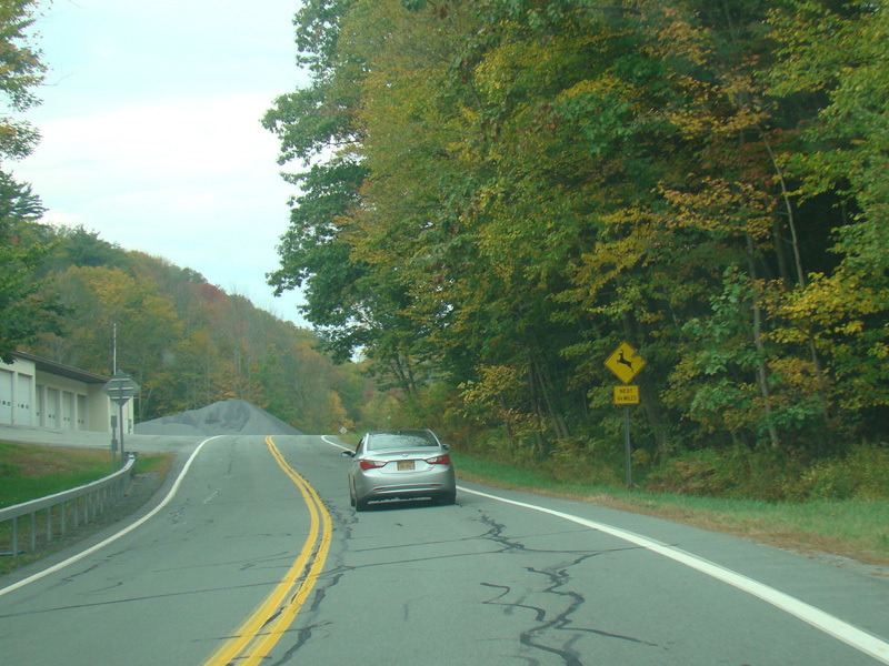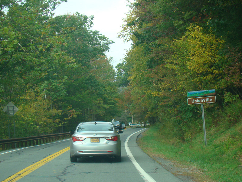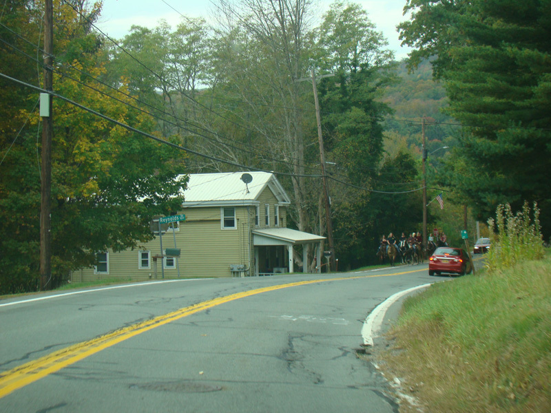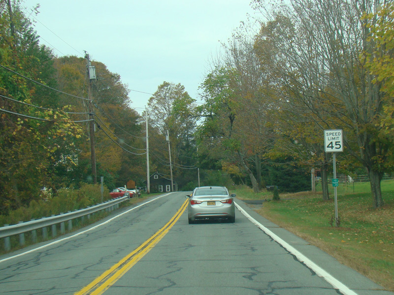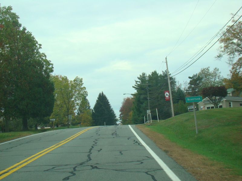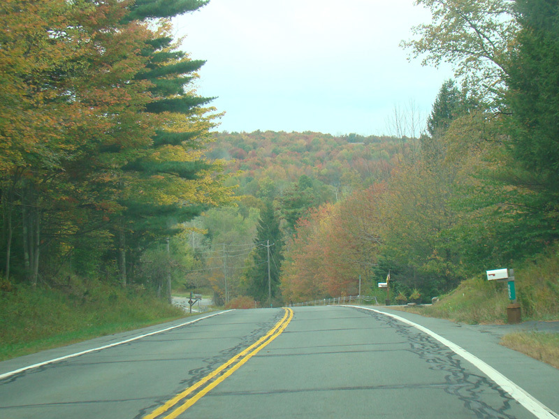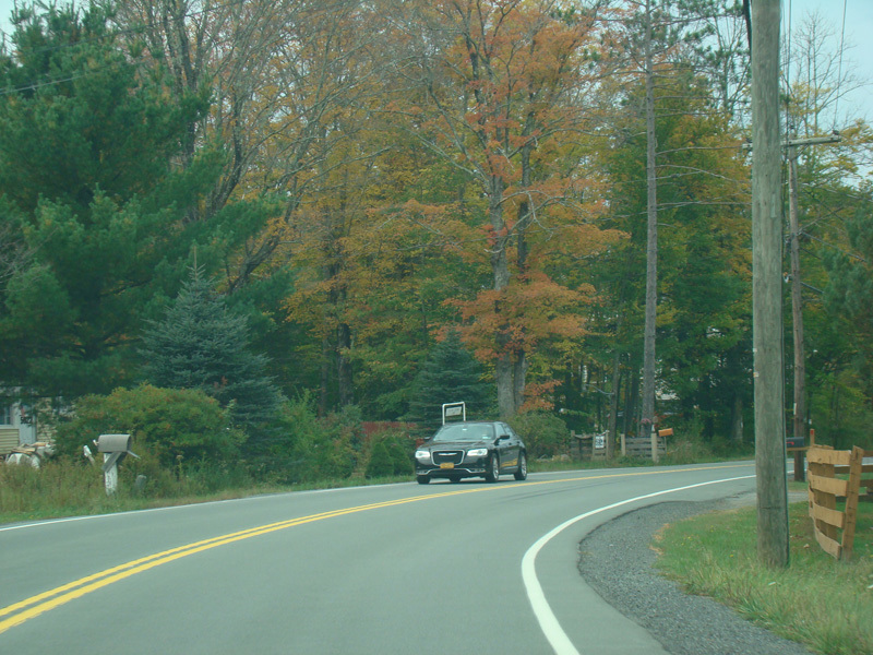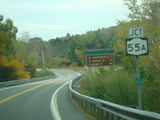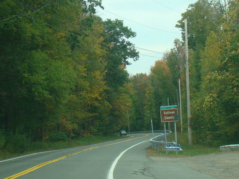 NY 55 comes under county maintenance and is also designated CR 17. Here, it is known as Neversink Road.