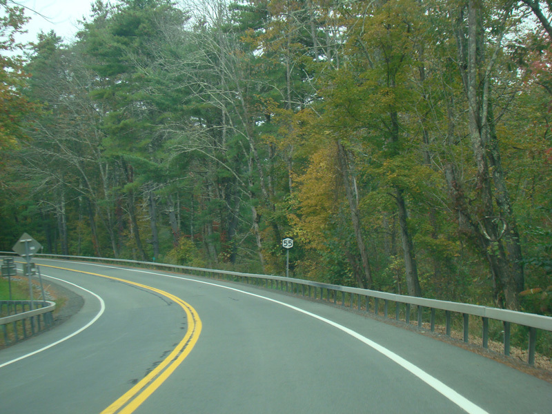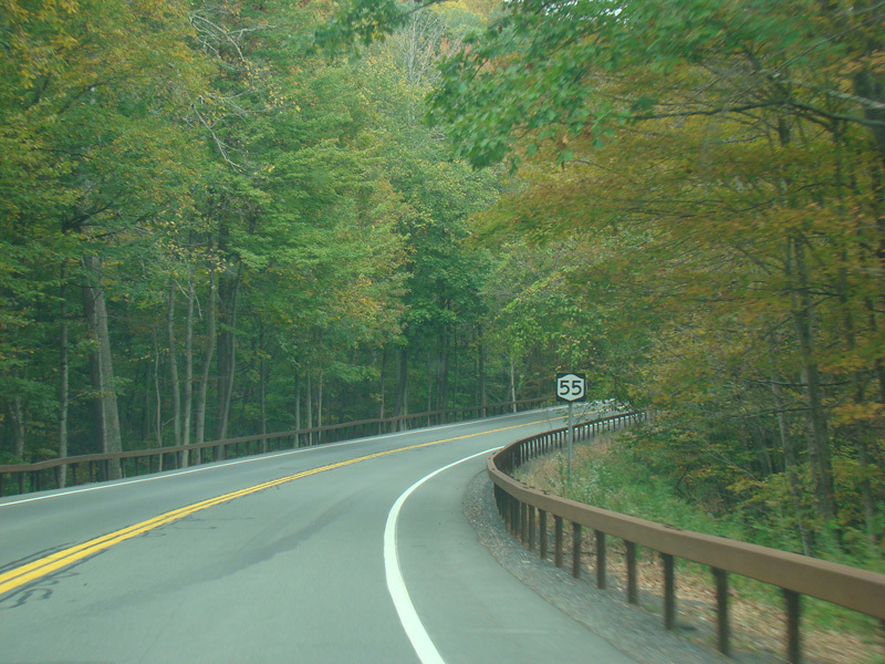 NY 55 splits off from US 209 in Napanoch and runs west as a two-lane undivided road.
