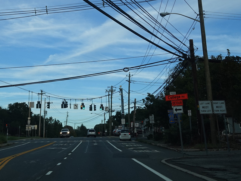 There is a traffic light at CR 81. Turn left onto College Road to go north. Turn right onto New County Road to go south.