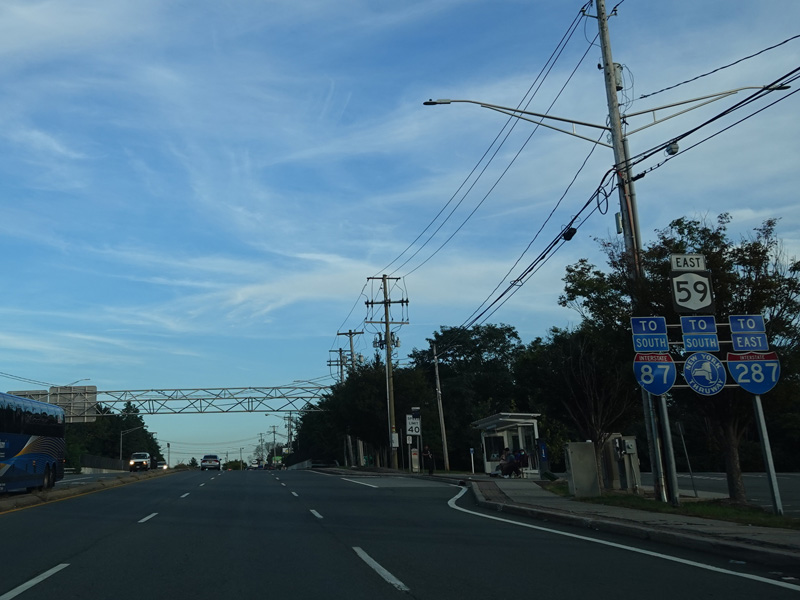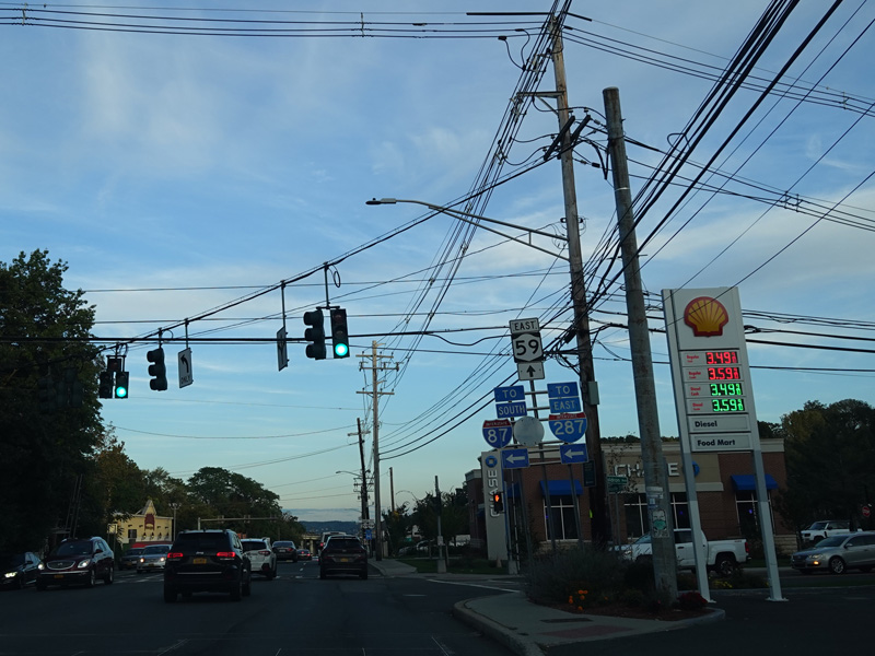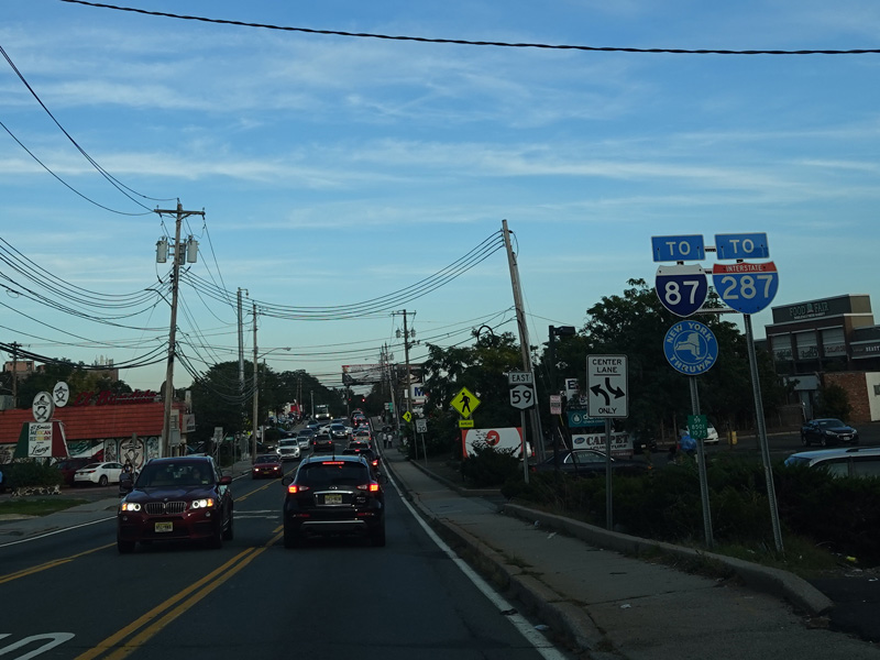 NY 59 runs east as a six-lane divided road. Turn left onto College Avenue for access to West Nyack Road.