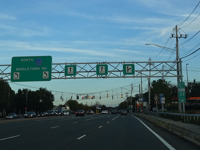 There is a traffic light at Middletown Road (CR 33). Turn left to go north or right to go south.