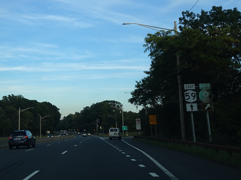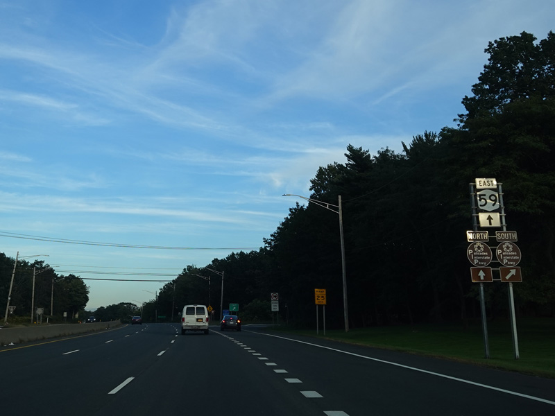 Orange Turnpike changes designation from NY 17 to NY 59 just after crossing the New York Thruway (I-87).