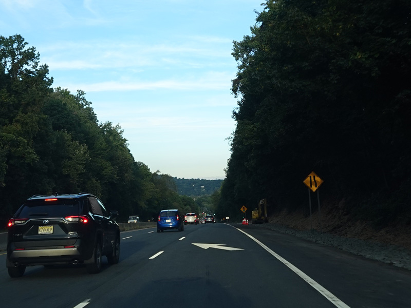 In Nanuet, NY 59 widens to become a six-lane divided road. There is an interchange with the New York Thruway (I-87/I-287). Turn left at the first traffic light to go north or right for Forman Drive (CR 35A). Turn left at the third traffic light to go south.