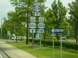 Welcome to West Nyack! NY 59 passes over Sickletown Road (CR 23) and Western Highway (CR 15), but there is no interchange with either.