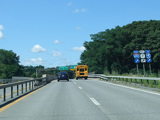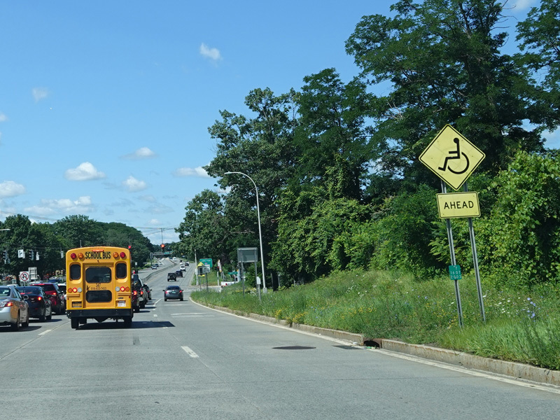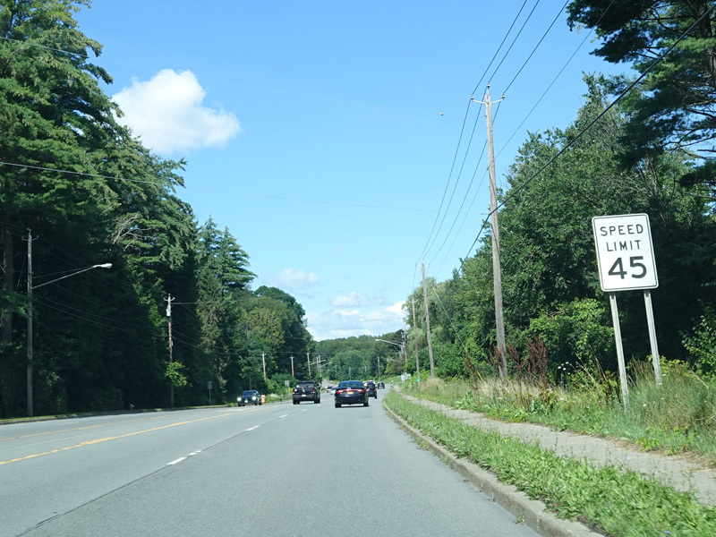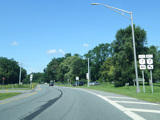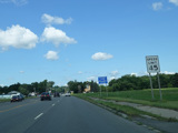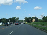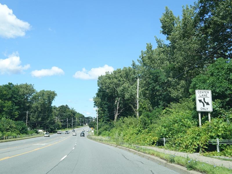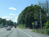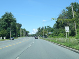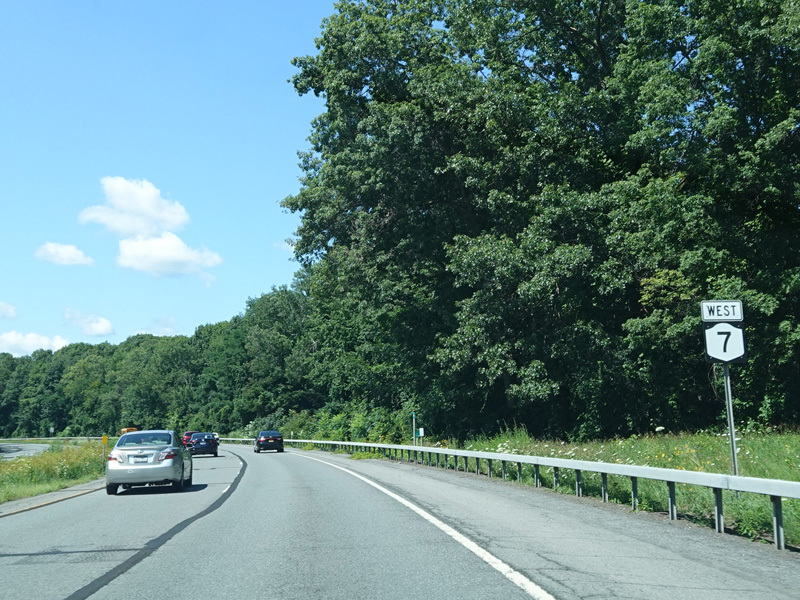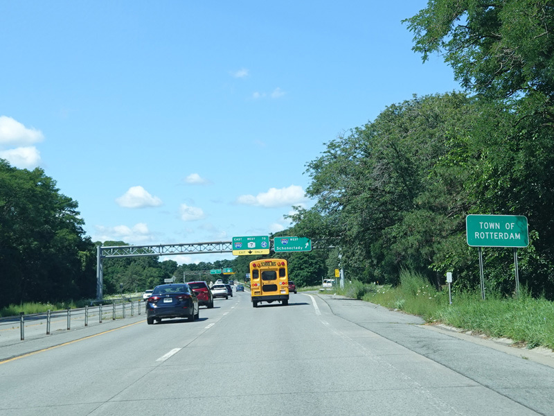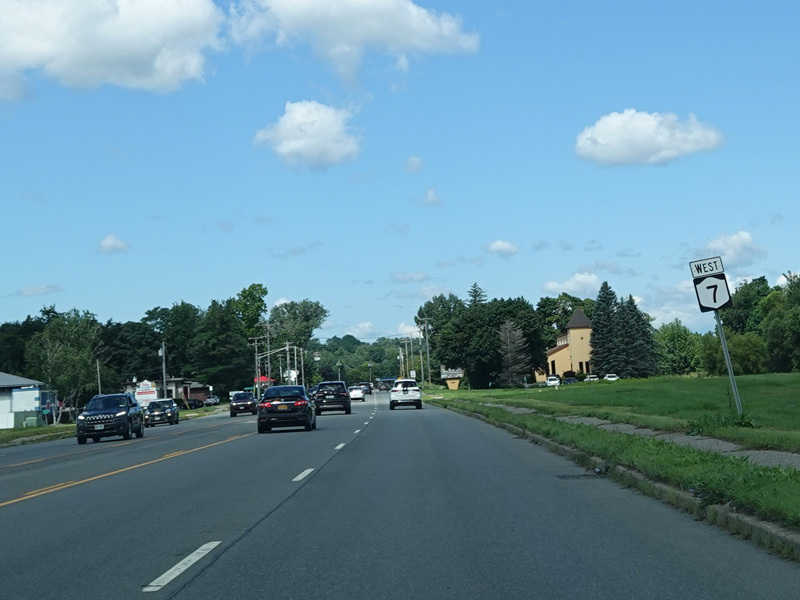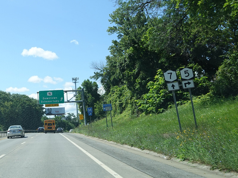 Troy-Schenectady Road changes designation from NY 2 to NY 7 upon crossing the Northway (I-87) in Latham. It runs west as a four-lane road. There is a grass median at first, and then the median ends and it continues as an undivided road.