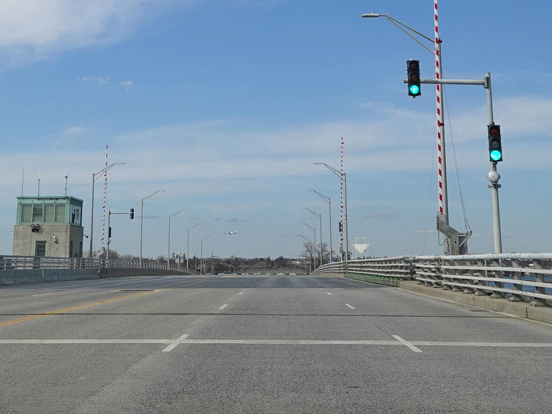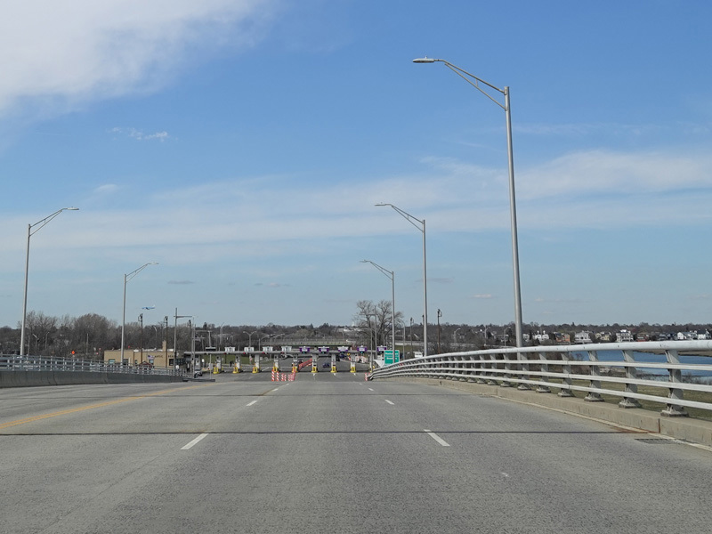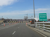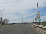 Immediately after the toll, there is a grade-separated interchange with Seagirt Boulevard. There is currently no signage due to construction, and the signage that existed previously was tiny and did not give the street name, only that this is the exit for the Rockaways and Brooklyn.