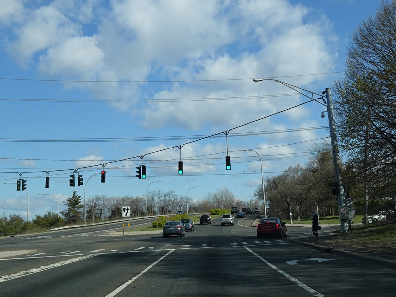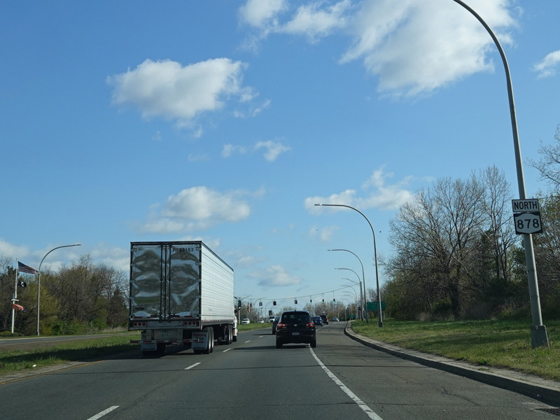 This section of the Nassau Expressway ends here at a traffic light at Rockaway Turnpike (CR 257). Turn left to go north or right to go south. To access the other section, turn left and proceed northwest into Queens.