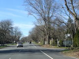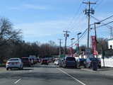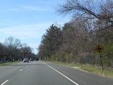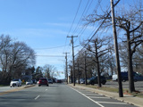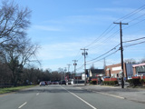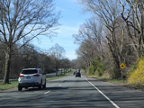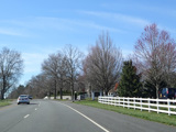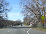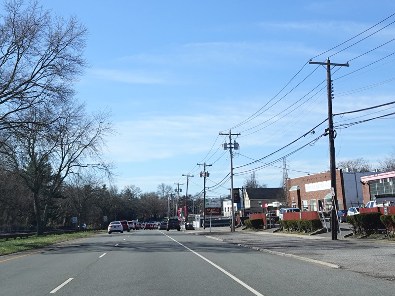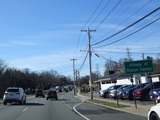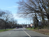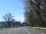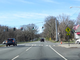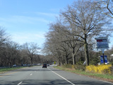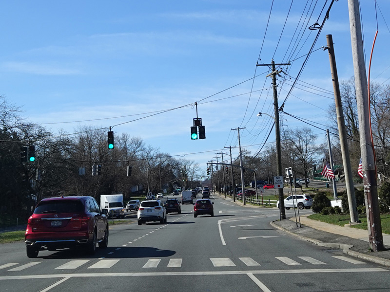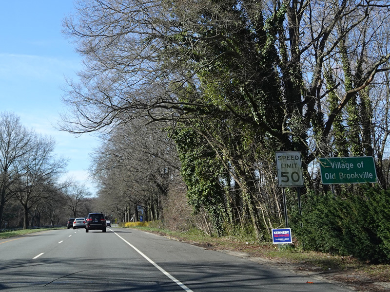 Coming into the Village of Roslyn Harbor, the speed limit drops to 40 MPH. Back Road begins on the right at a traffic light.