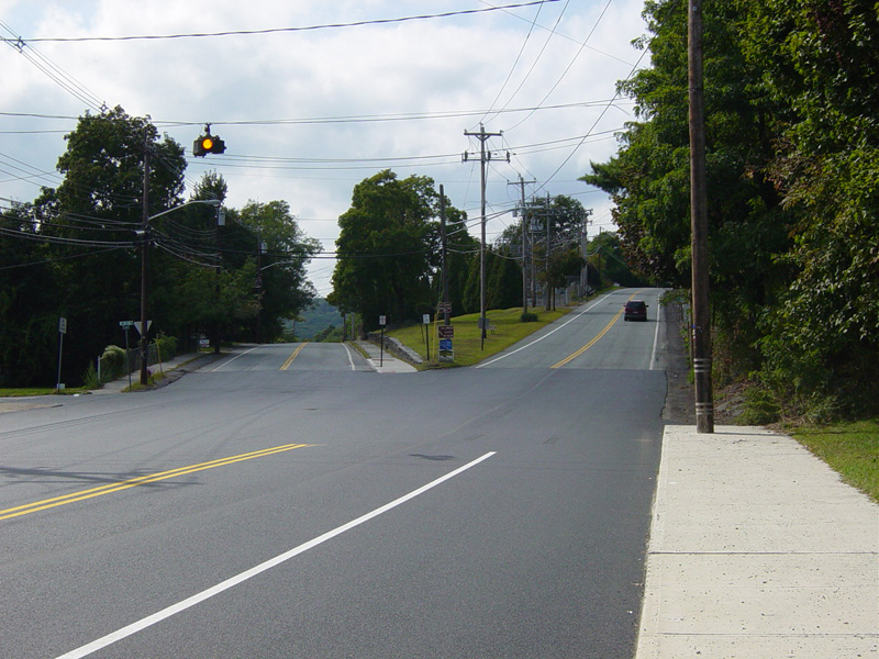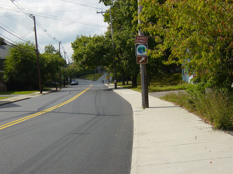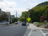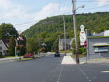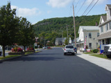 NY 97 and NY 42 begin at US 6/US 209 in Port Jervis. The two routes are multiplexed for their first couple of miles. The first section is known as West Main Street. It begins as a two-lane divided road, but the median ends after a couple of blocks.