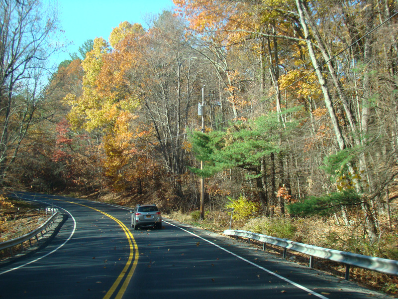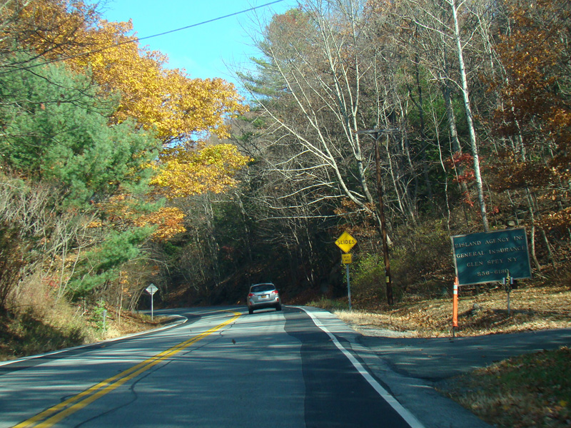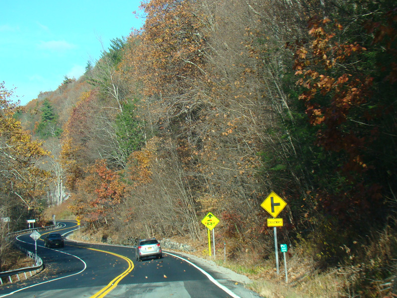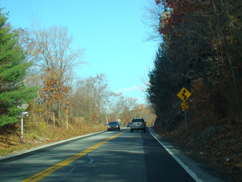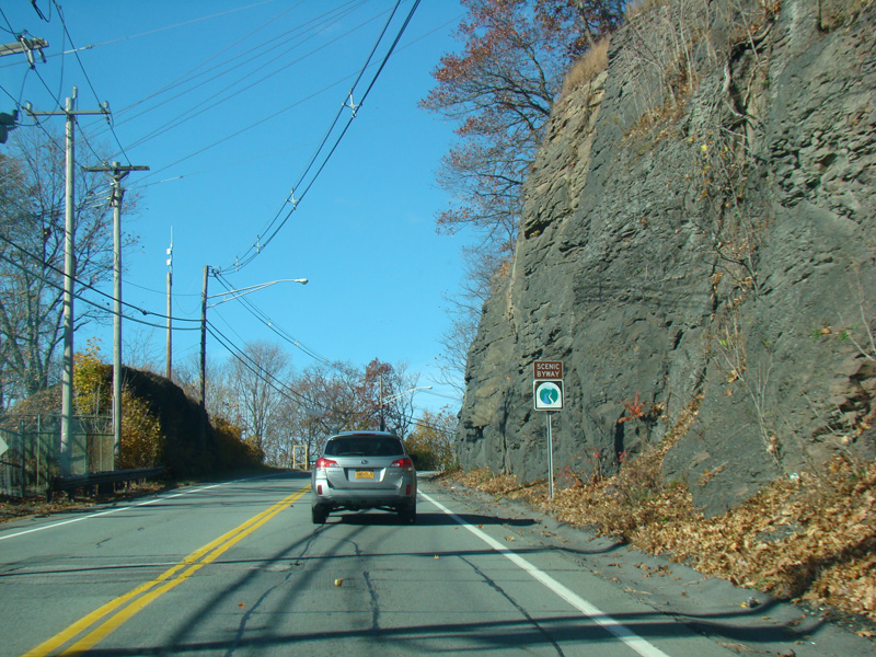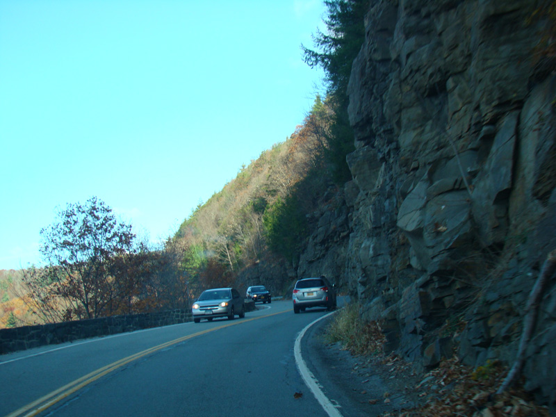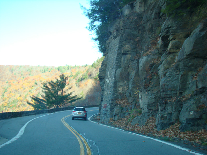 NY 97 passes through a very curvy section known as the Hawk's Nest along the side of a cliff by the Delaware River.