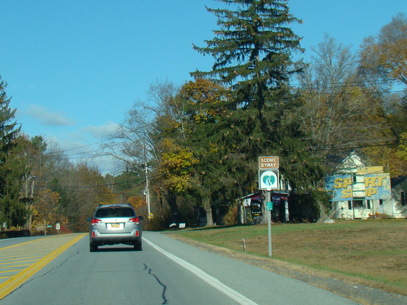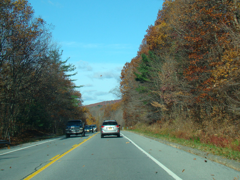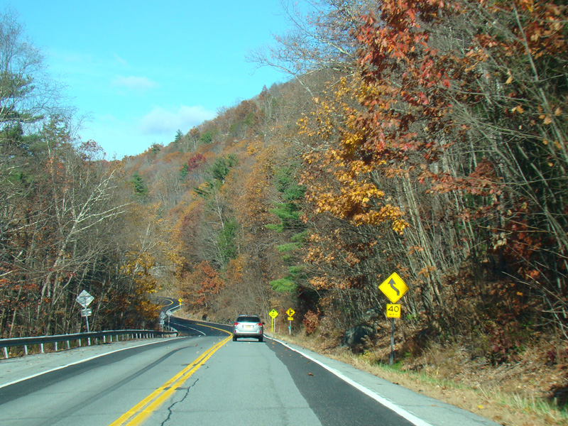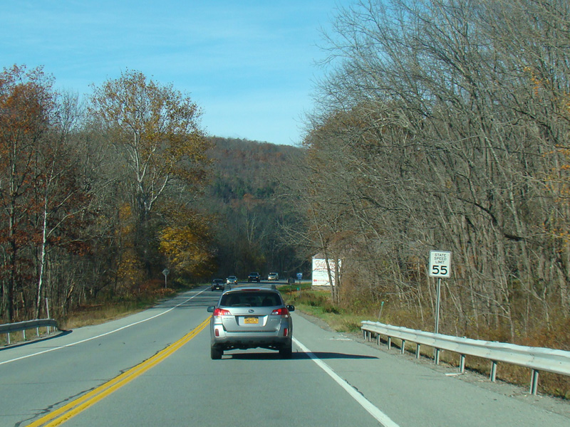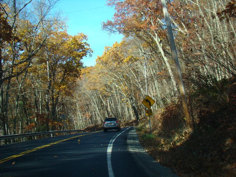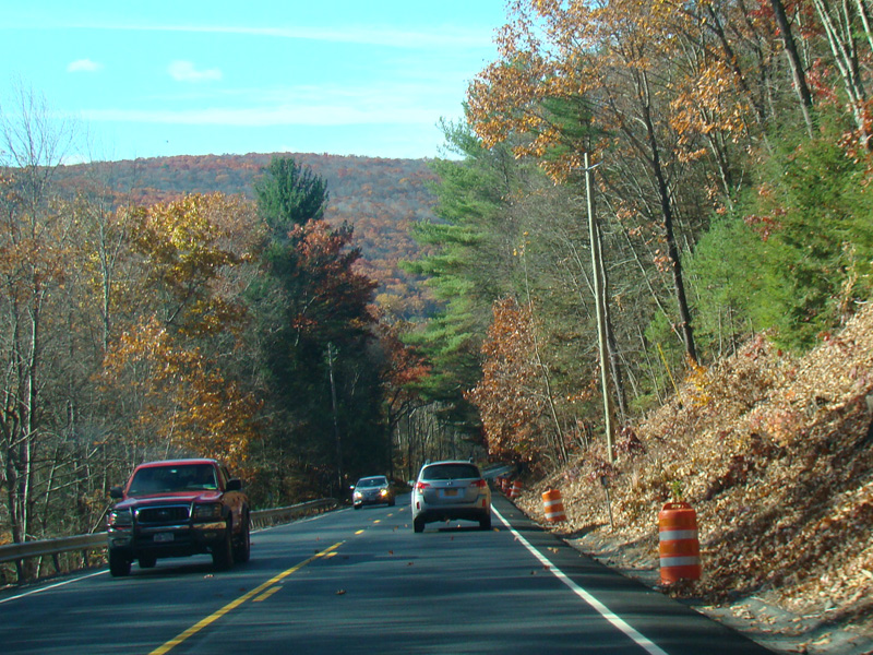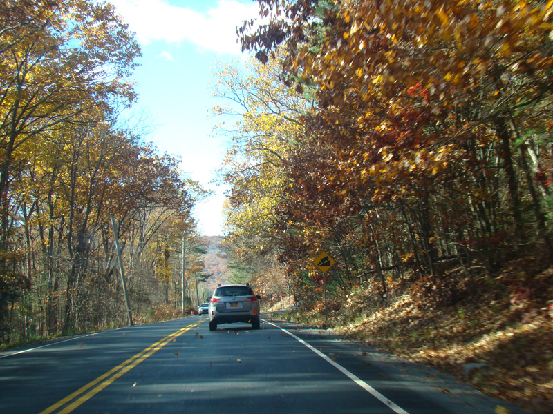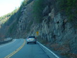NY 97 passes through a very curvy section known as the Hawk's Nest along the side of a cliff by the Delaware River.