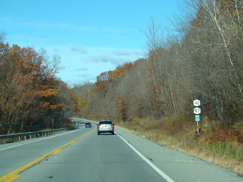 NY 42 splits off to the right here. Continue straight ahead to stay on NY 97.