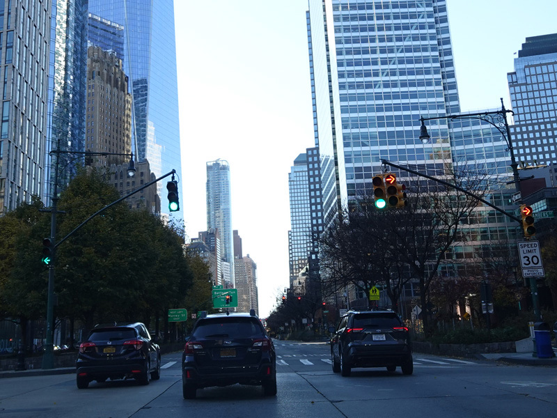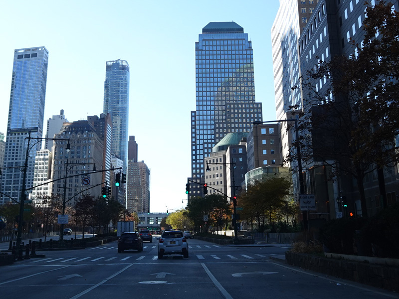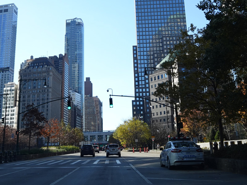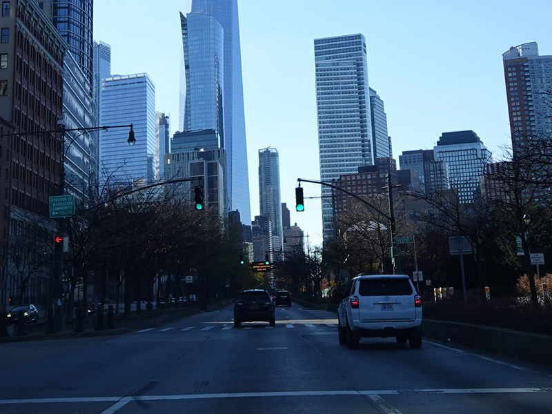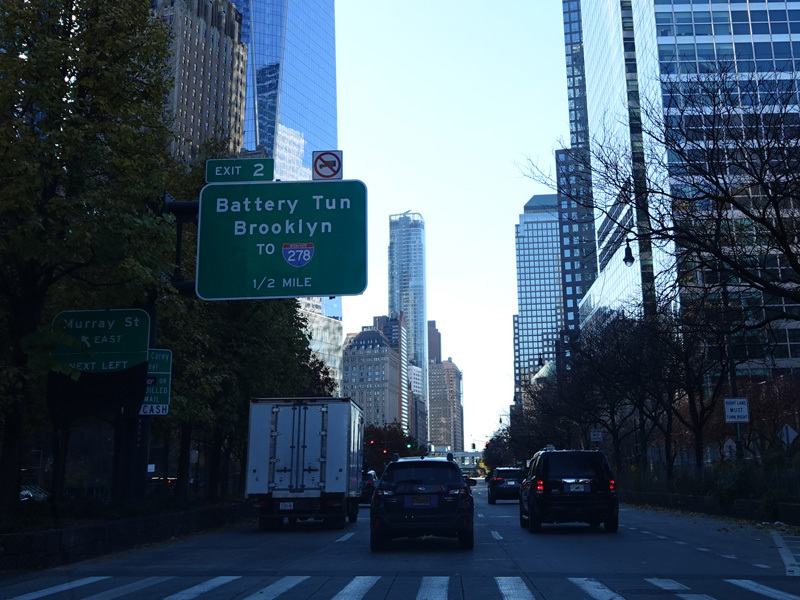 Just beyond exit 1, NY 9A ends at a traffic light at Battery Place.