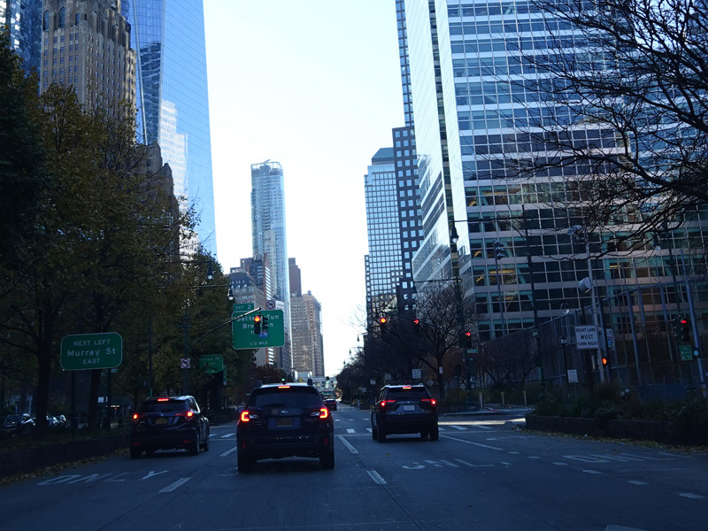 West Street runs south through Lower Manhattan. Vestry Street, Chambers Street, and Murray Street begins on the left.