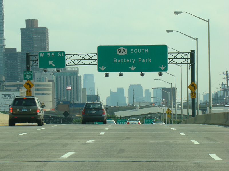 NY 9A continues downtown, changing names to become 11 Avenue and then West Street. Exit 3 is for Canal Street and the Holland Tunnel (I-78).