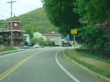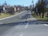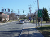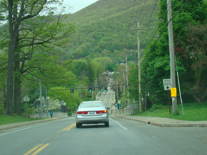 North Avenue intersects Main Street at a traffic light. Business NY 52 splits off to the left here.