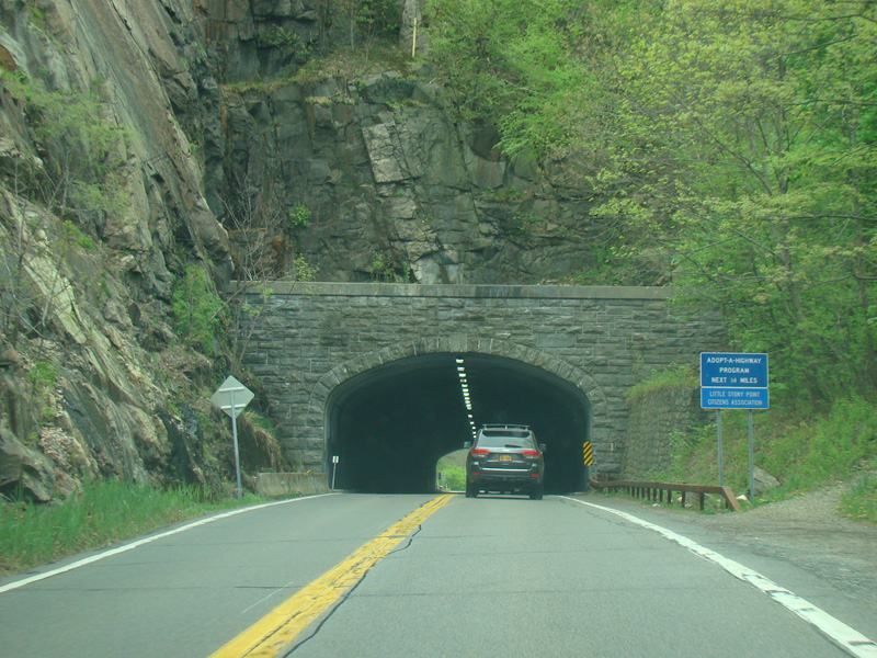 There is a short mountain tunnel, the only one for cars in New York State, at the county line.