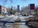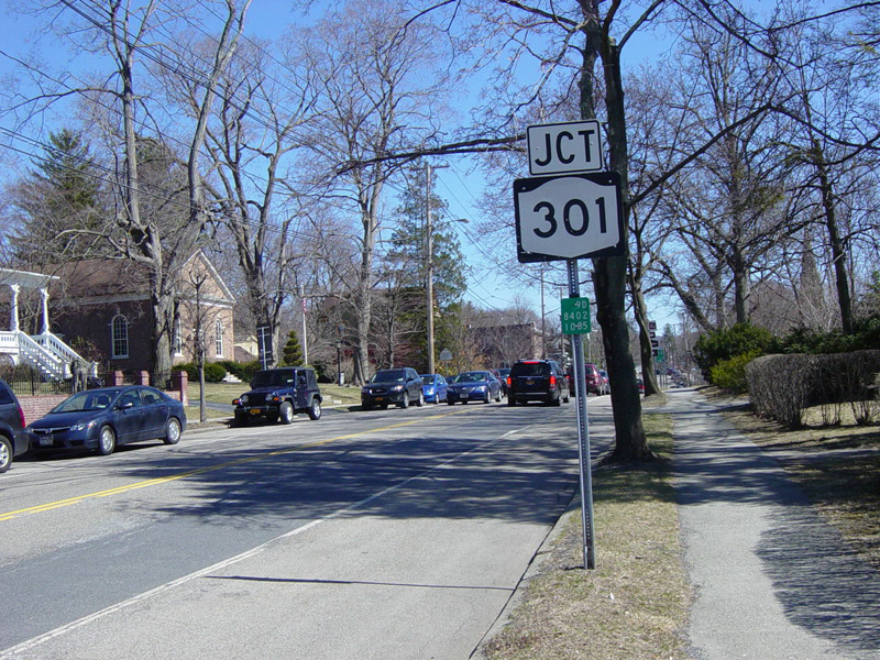 Morris Avenue intersects Main Street at a traffic light. Turn left for NY 301, which begins here. Turn right for the Cold Spring train station. Straight ahead, NY 9D changes names to become Chestnut Street.