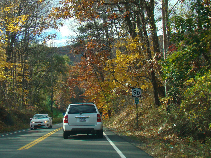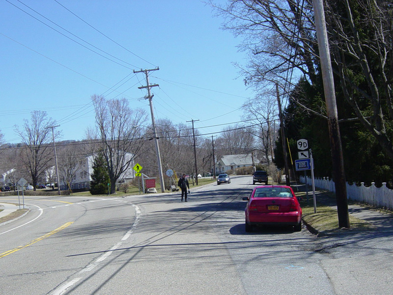 Chestnut Street splits off to the right as a local street. Bear left to stay on NY 9D.