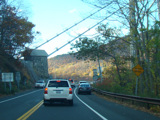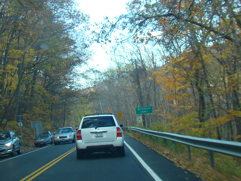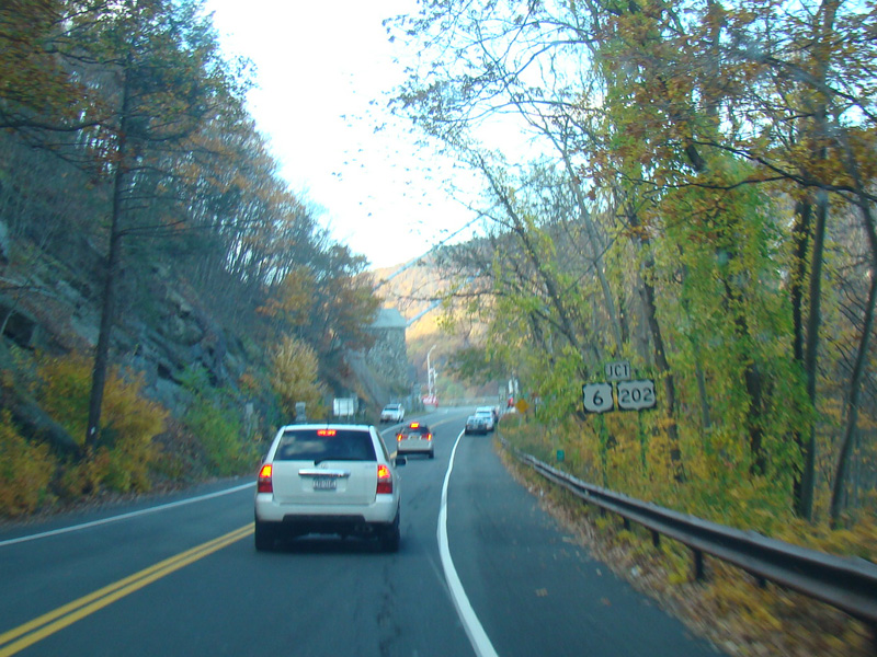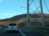 NY 9D ends here at US 6/US 202 right by the Bear Mountain Bridge. Turn right to go west and cross the bridge. Turn left onto Bear Mountain Bridge Road to go east.