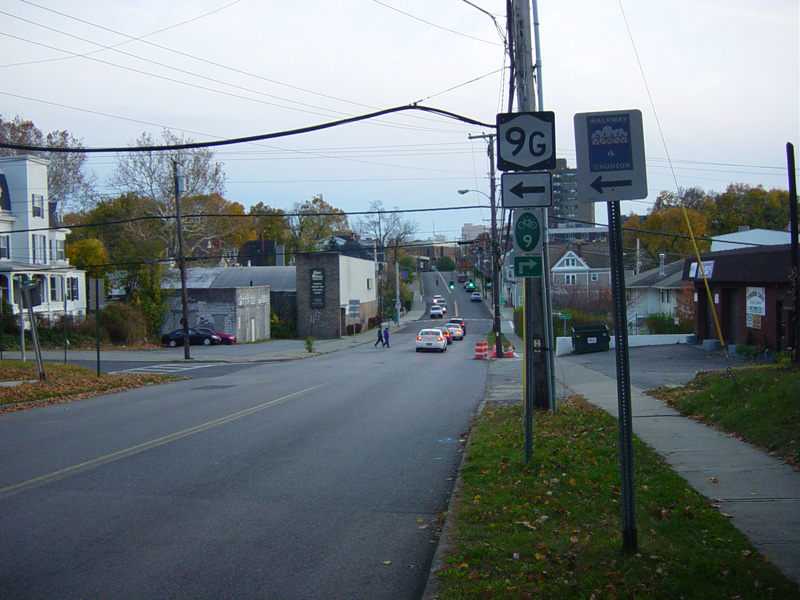 Marist Drive begins at US 9 and extends east for one block as a divided road. At the end, bear right onto Washington Street to stay on NY 9G.