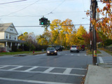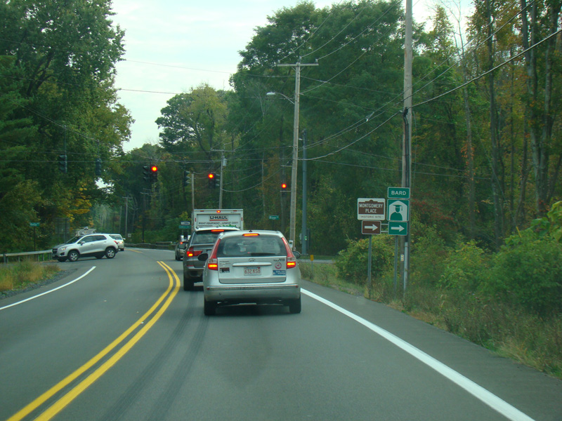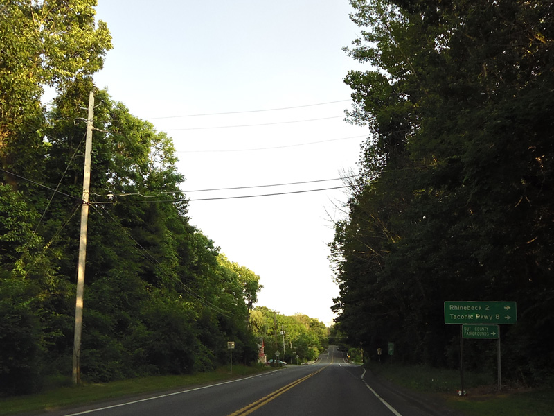 Welcome to the Town of Rhinebeck! The two routes split at a traffic light. Turn right for NY 199. Continue straight ahead to stay on NY 9G.