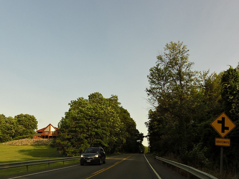 Washington Street ends here. Bear left onto Marist Drive to stay on NY 9G. Bear right for North Road.