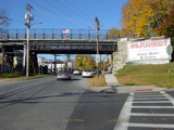 Washington Street passes under the Walkway Over the Hudson, an old railroad bridge over the Hudson River that has been converted into a pedestrian bridge.