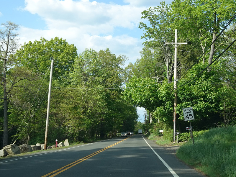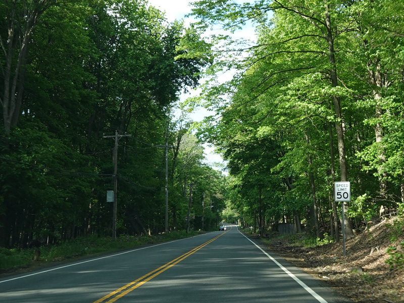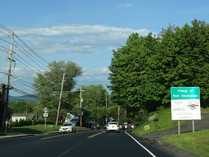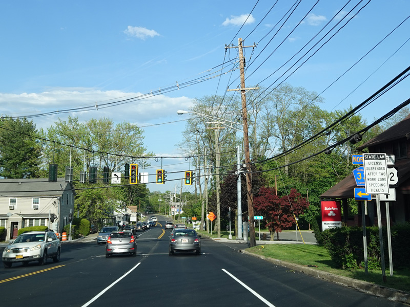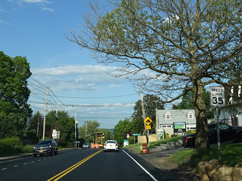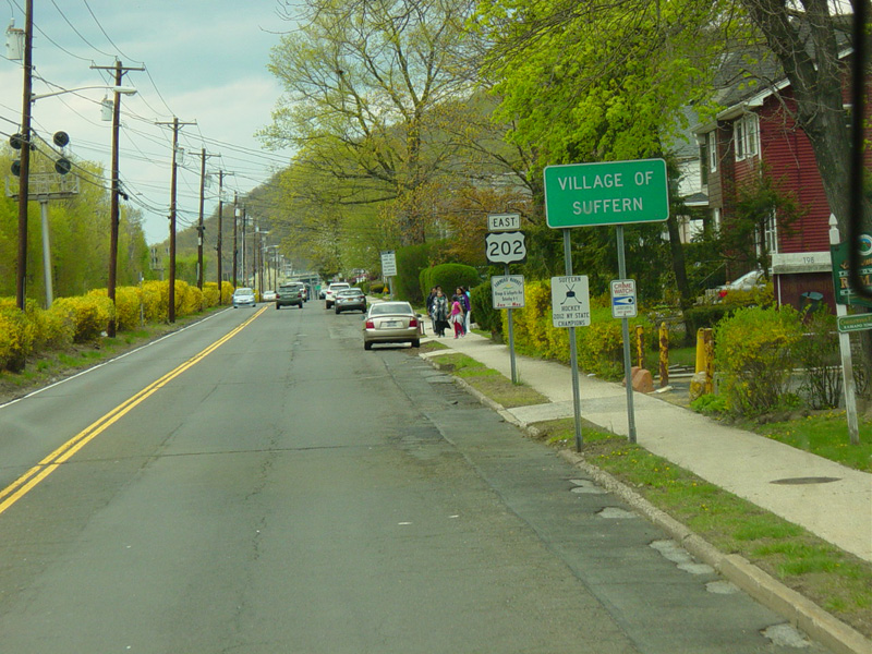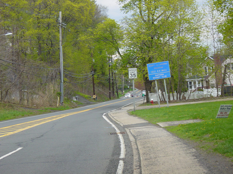 Welcome to New York, Rockland County, and the Village of Suffern! Orange Avenue runs north as a two-lane undivided road.
