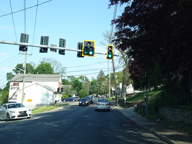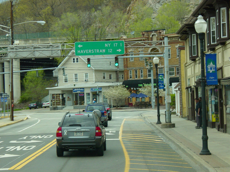 After one block, the two routes split. Turn right onto Wayne Avenue to stay on US 202. Bear left to stay on Orange Avenue for NY 59.