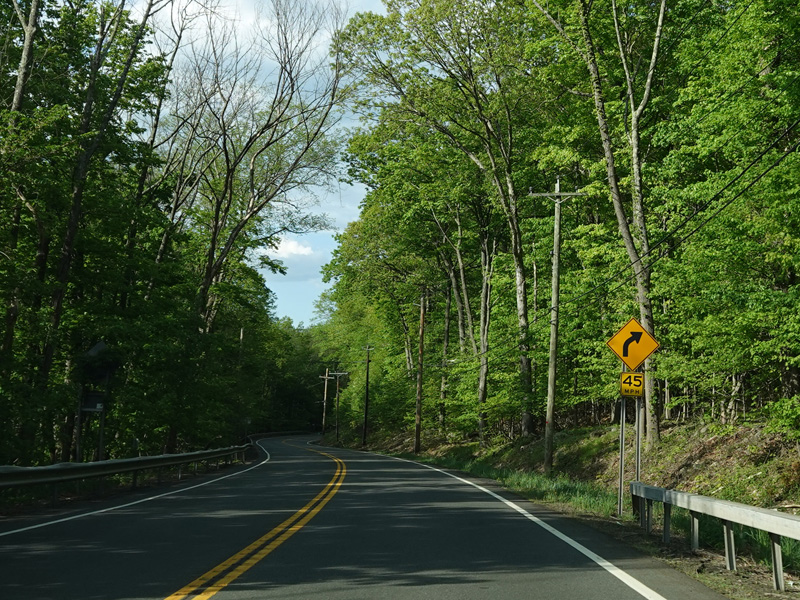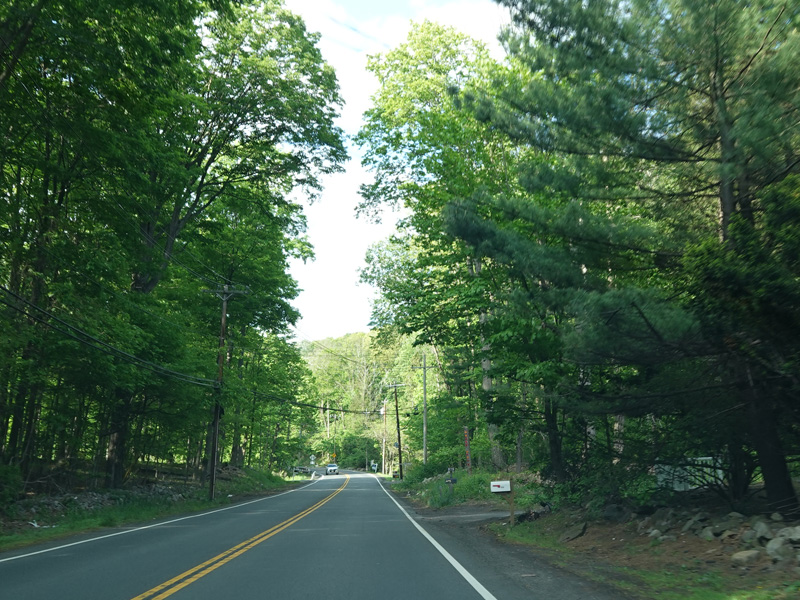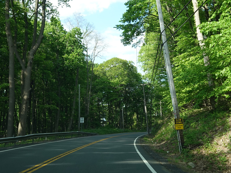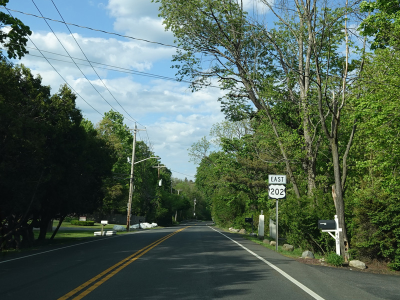 US 202 continues east as a two-lane undivided road. In this area, it is known as West Ramapo Road. There is a traffic light at Rosman Road.