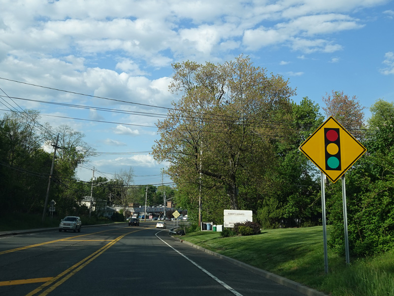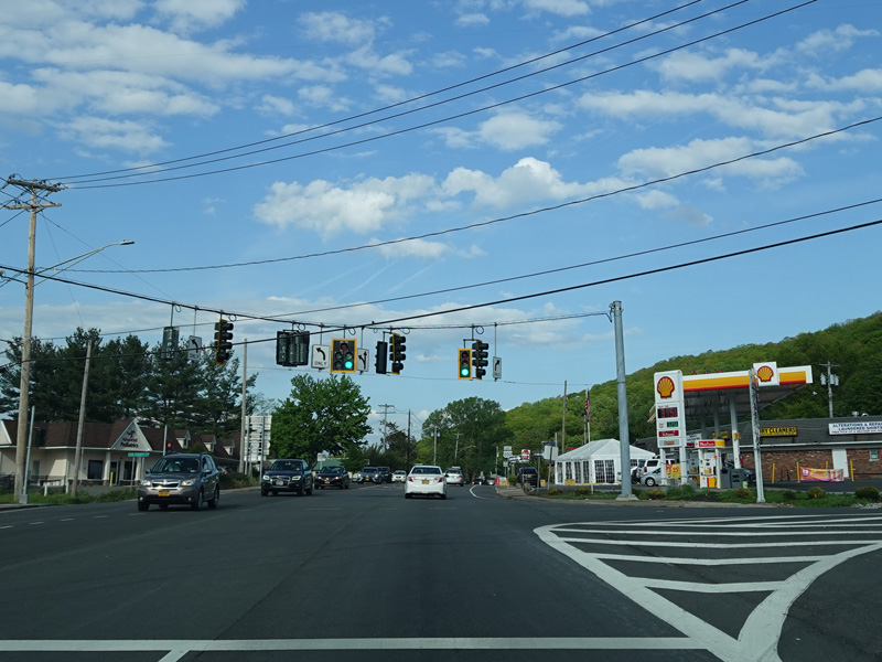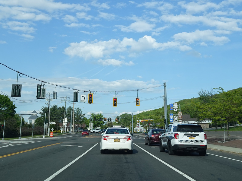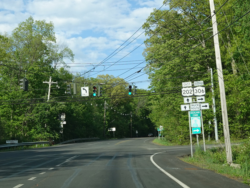 East Ramapo Road ends here at a traffic light. Turn left onto Gurnee Avenue to stay on US 202. Continue straight ahead onto Westside Avenue for access to US 9W south.