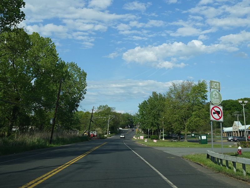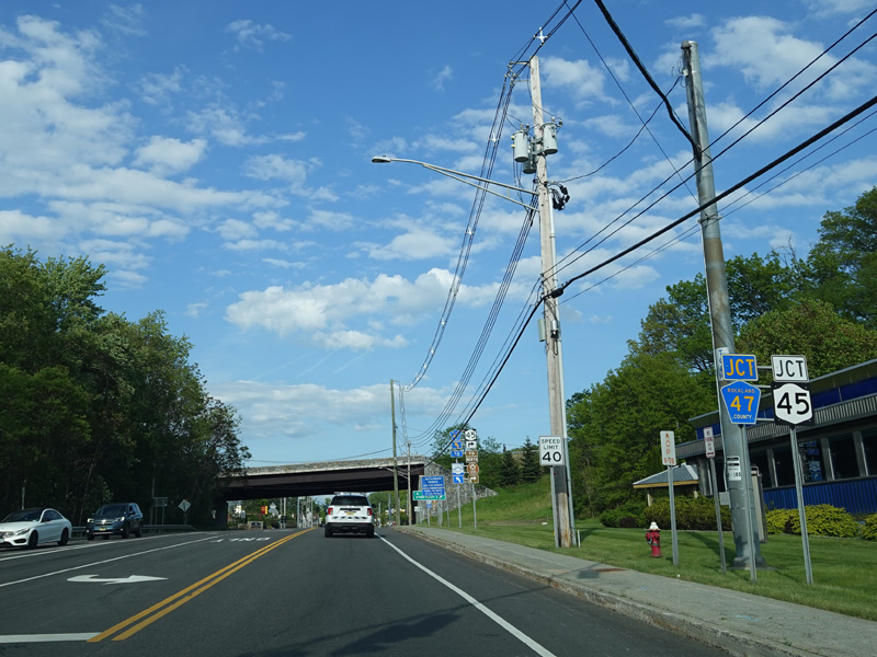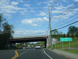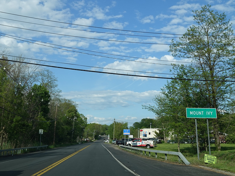 After the overpasses, the is a pair of traffic lights. Turn left at the first light for Thiells-Mount Ivy Road (CR 47). Turn right at the second light for NY 45 and an entrance to go north on the Palisades Parkway.