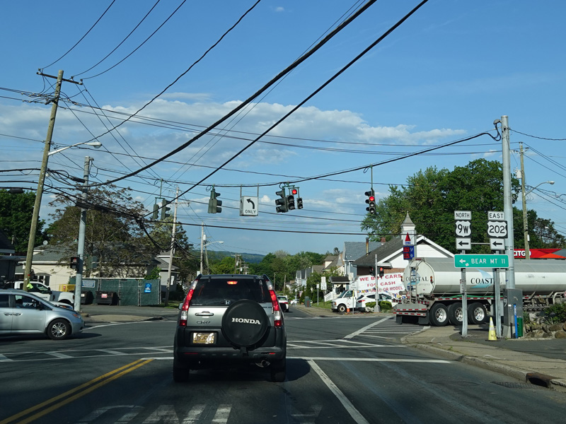 There is a traffic light at US 9W. Turn left to go north and to stay on US 202.