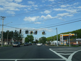 The two routes split at a traffic light. Turn left to go north on Main Street (CR 33).