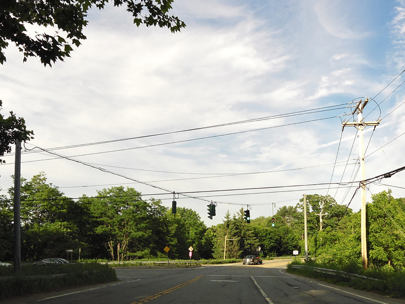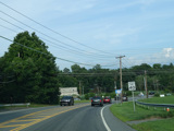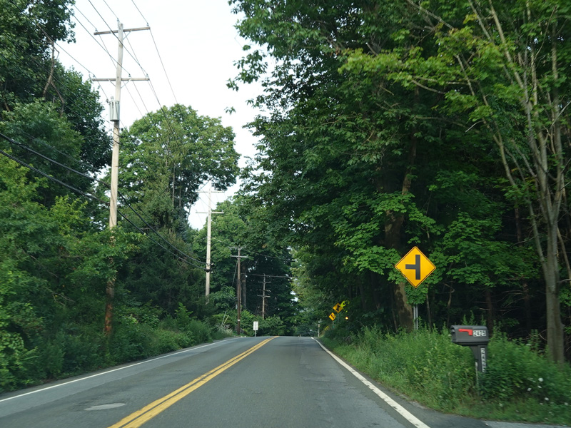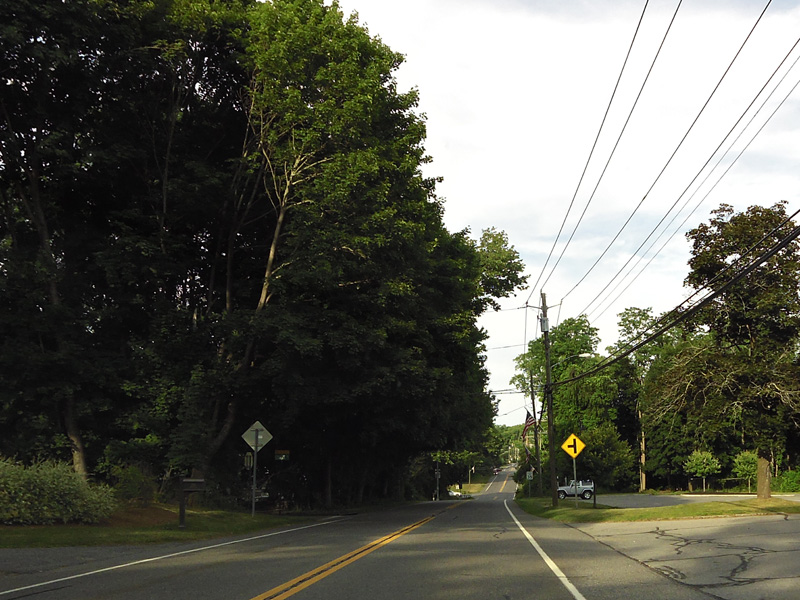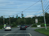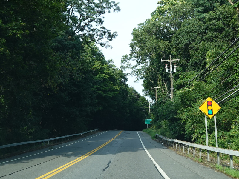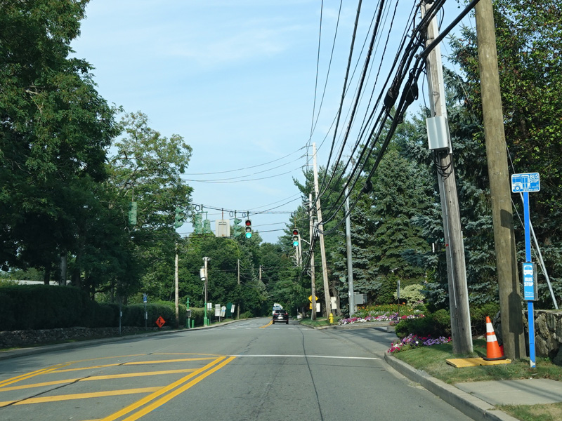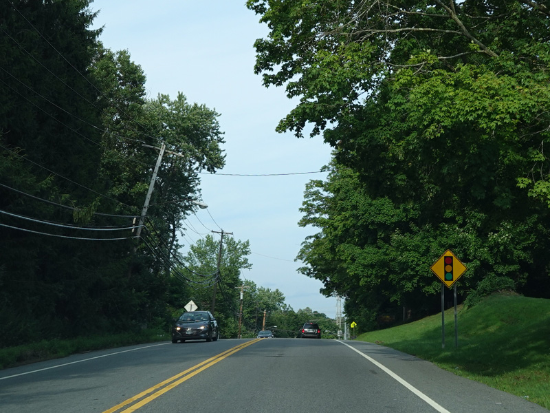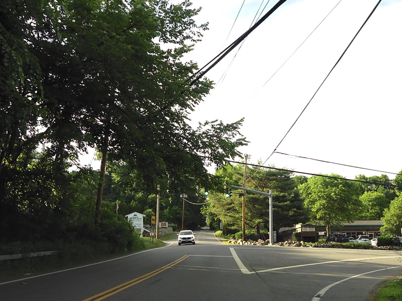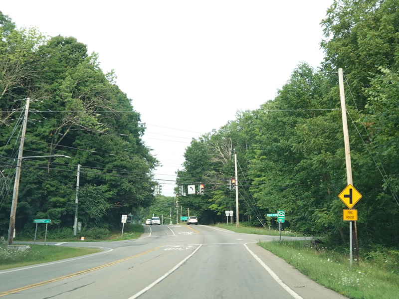 There is a traffic light. Mahopac Avenue (CR 136) is to the right. Croton Falls Road (CR 136) is to the left.