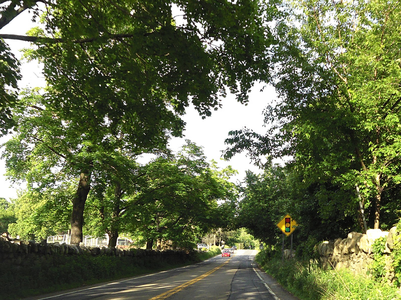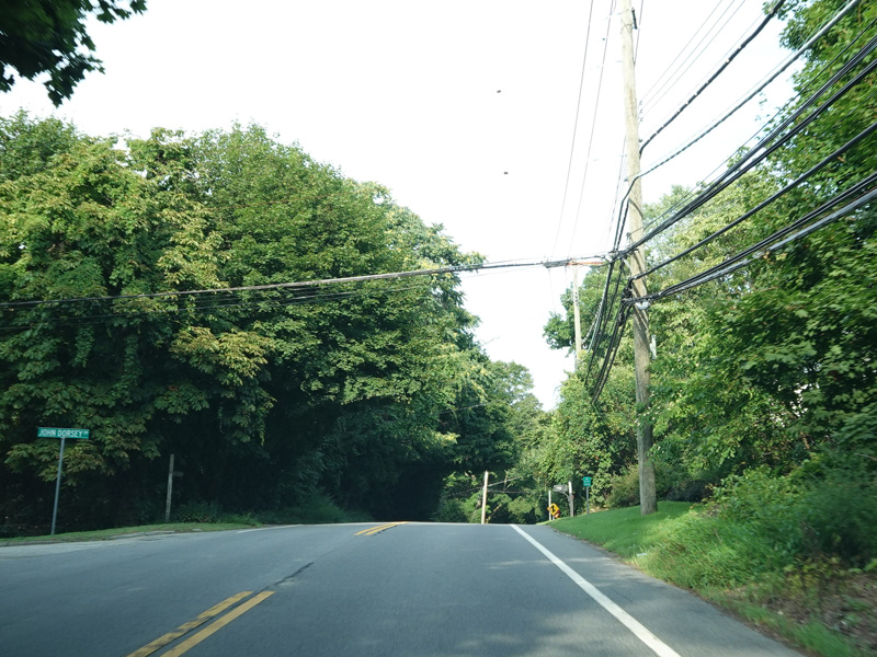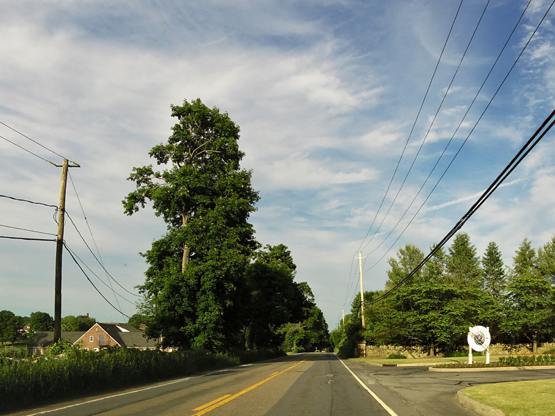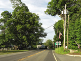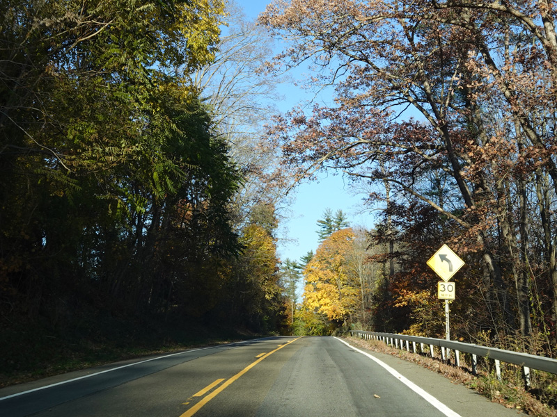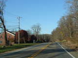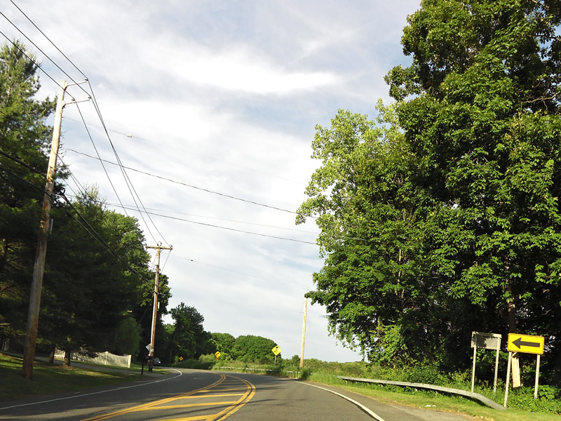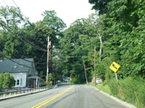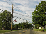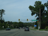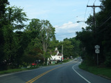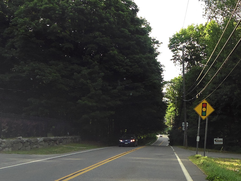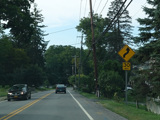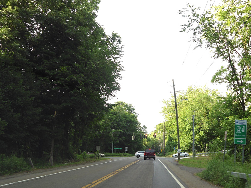 There is a traffic light. Mahopac Avenue (CR 136) is to the right. Croton Falls Road (CR 136) is to the left.