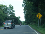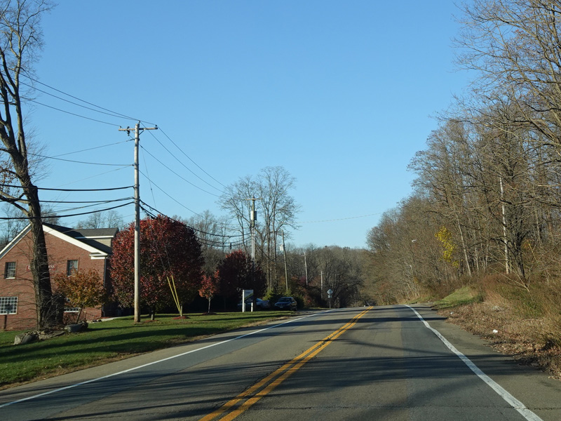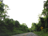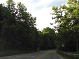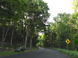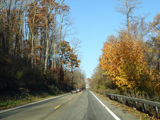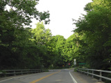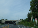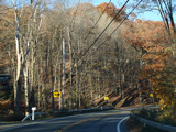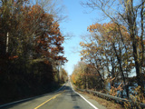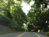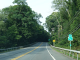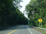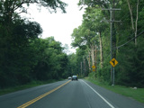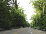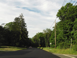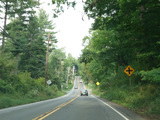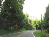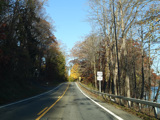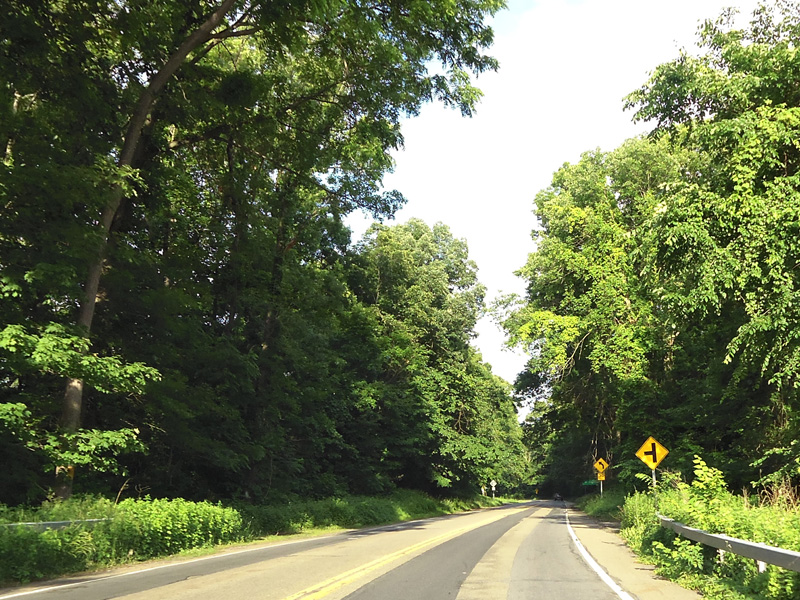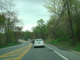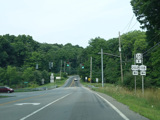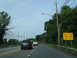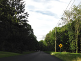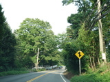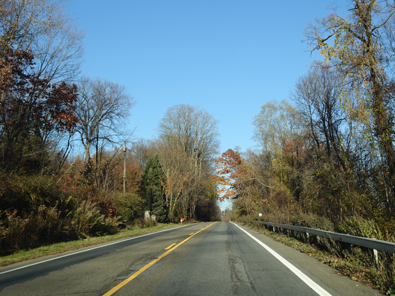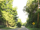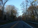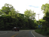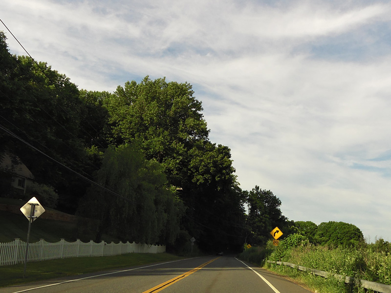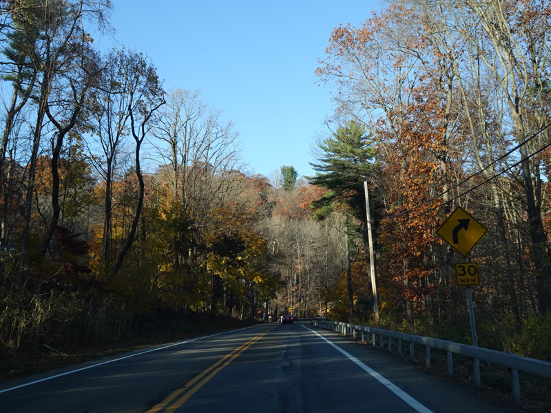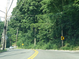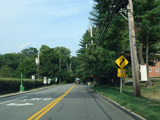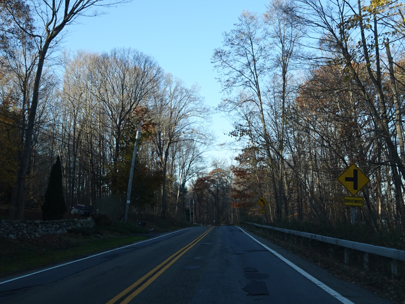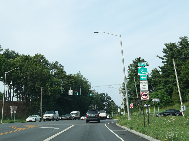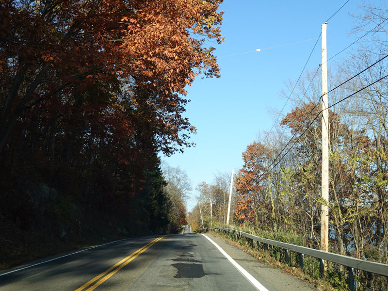 Crompond Road widens to four lanes. The eastern section of the Bear Mountain Parkway begins on the left at an uncontrolled intersection.