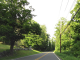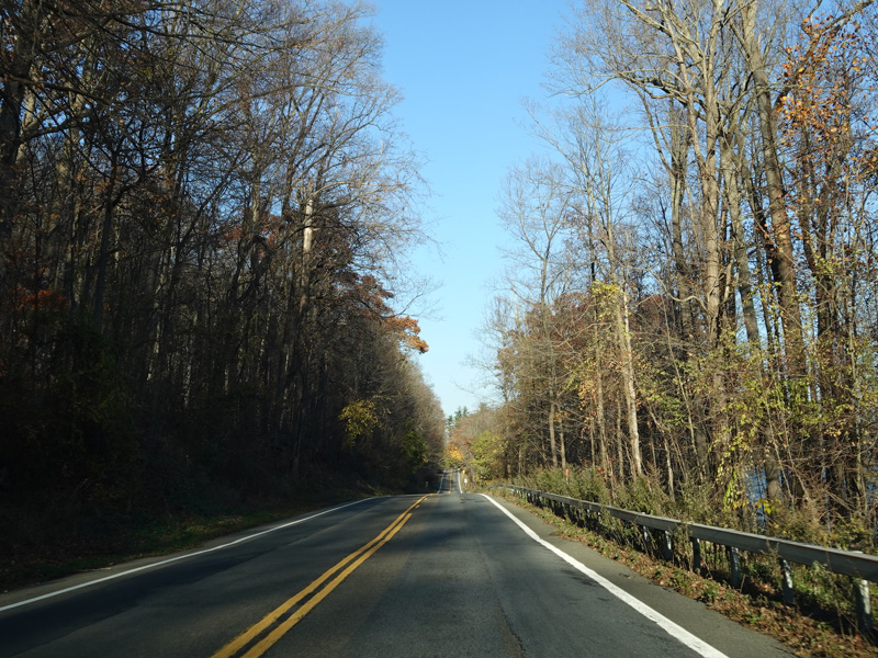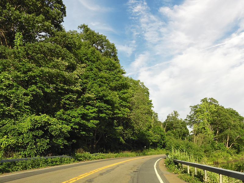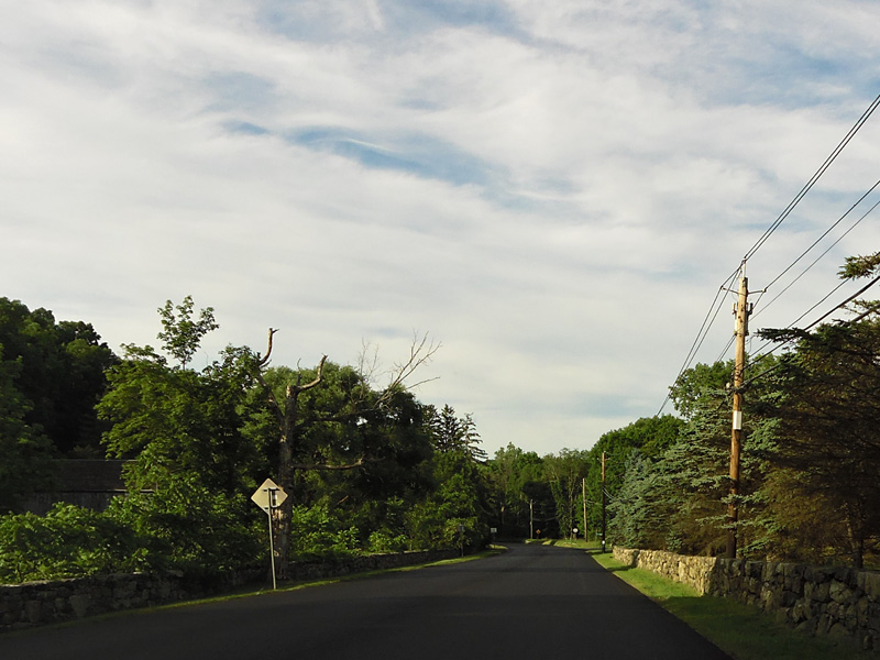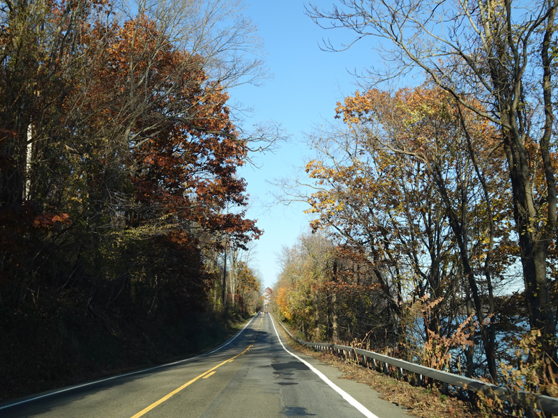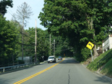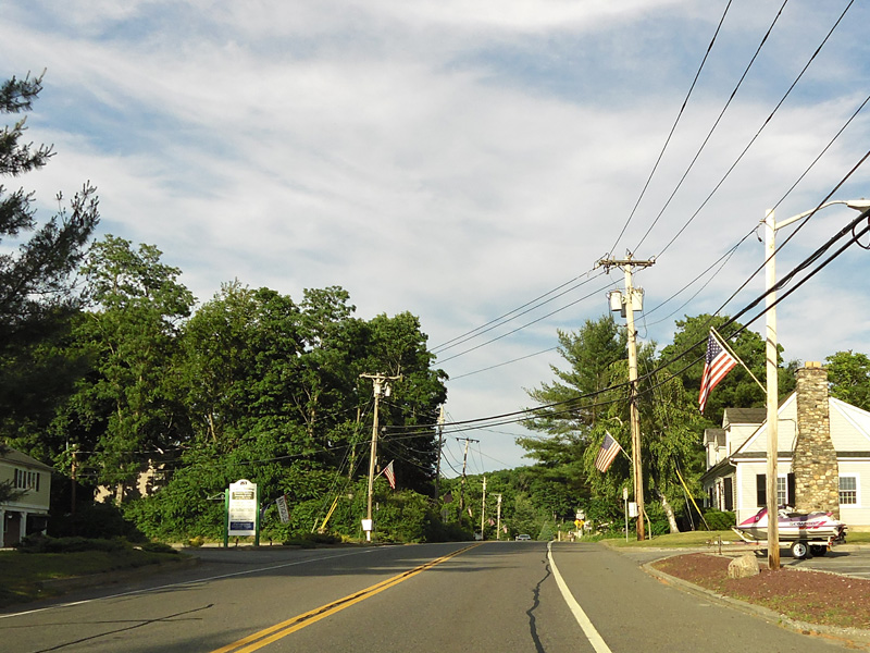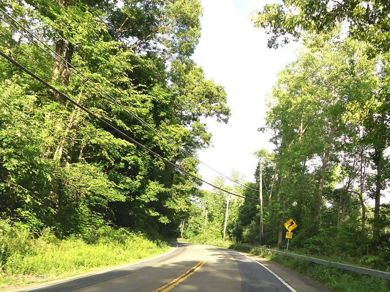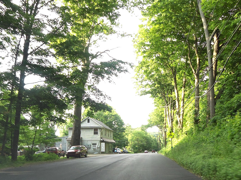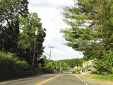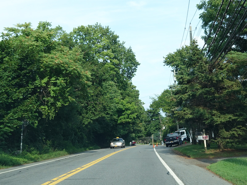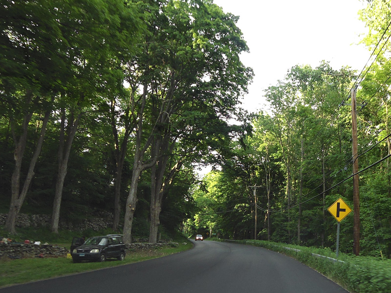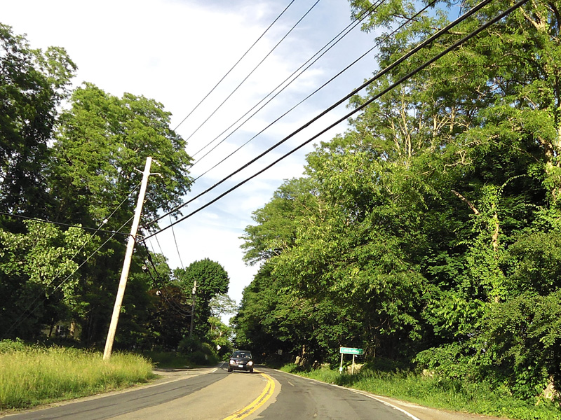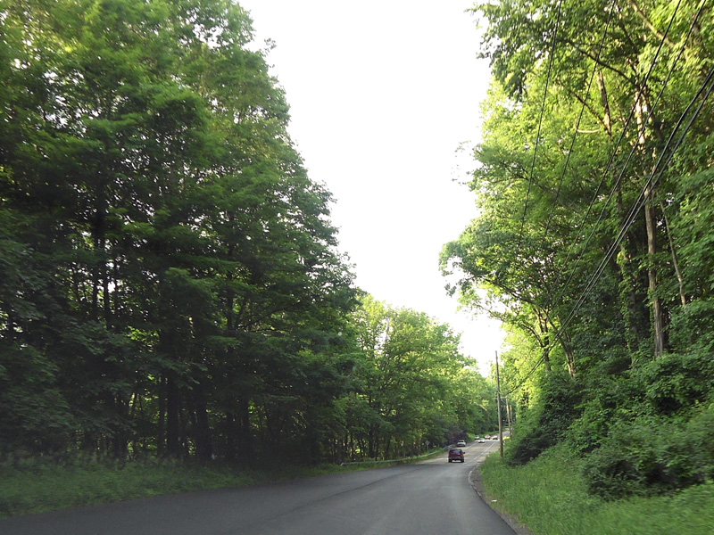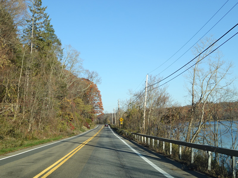 Tomahawk Street runs north as a two-lane undivided road. The Amawalk Reservoir is visible through the trees on the right.