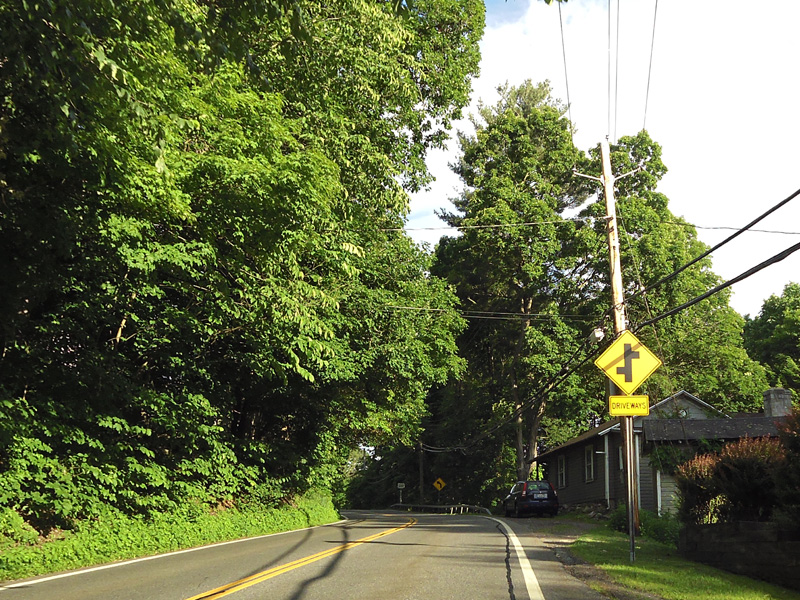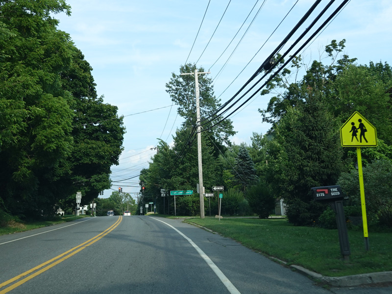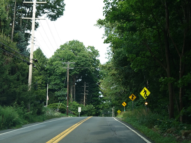 Welcome to Amawalk! This is, of course, an appropriate place for some pedestrian/bicycle crossing signs at the Empire State Trail, which is marked with route shields as if it were a road.