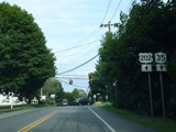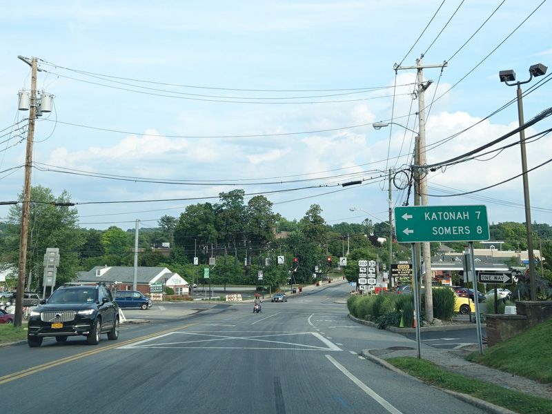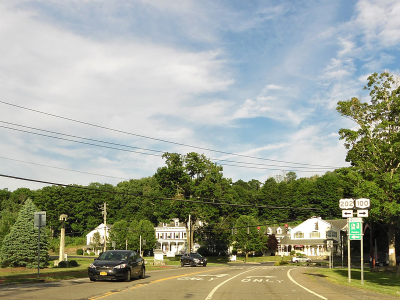 Somers Road ends at a traffic light at Somerstown Turnpike. Turn left to stay on US 202. Turn right to go south on NY 100, which begins here.