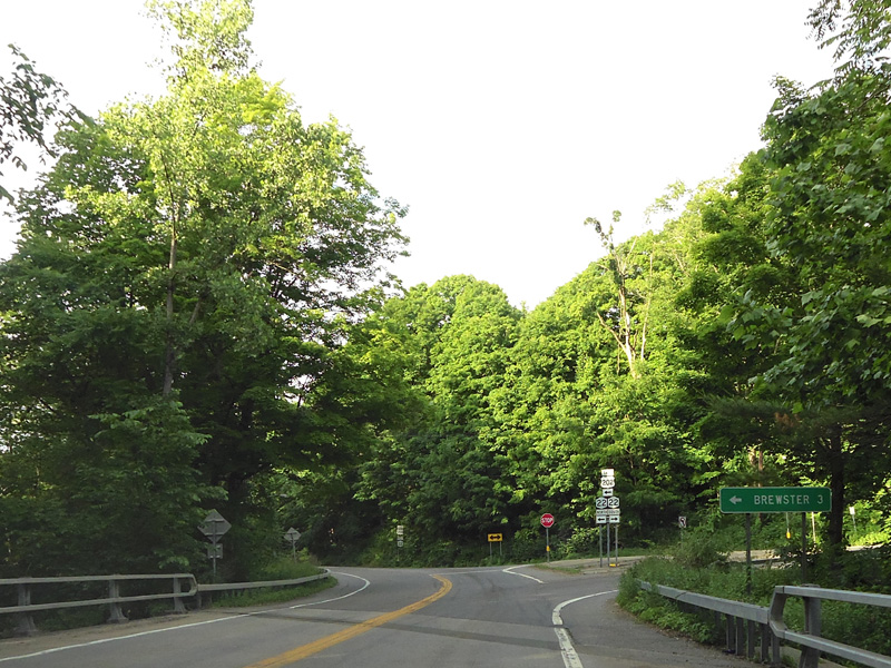 There is a stop sign at NY 22. Turn right to go south. Bear left to go north and to stay on US 202.