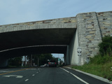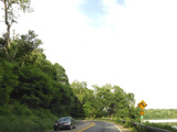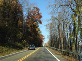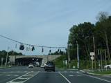 The western section of the Bear Mountain Parkway merges in from the left at a traffic light.