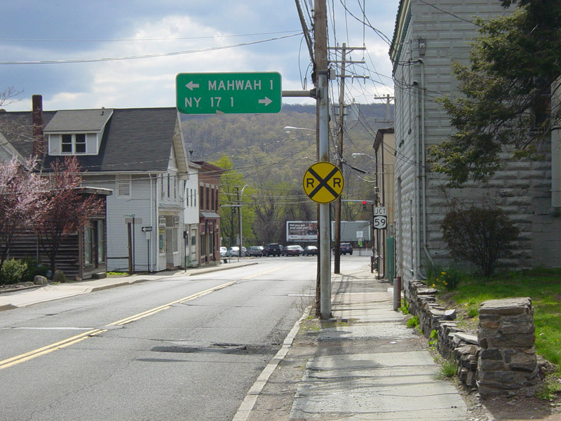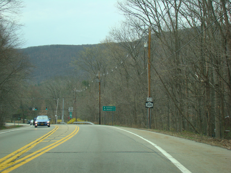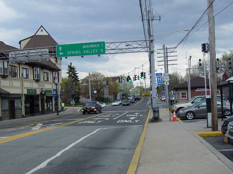 Skipping southwest to Suffern, Wayne Avenue runs southwest as a two-lane undivided road. It passes under the New York Thruway (I-87/I-287), but there is no interchange.