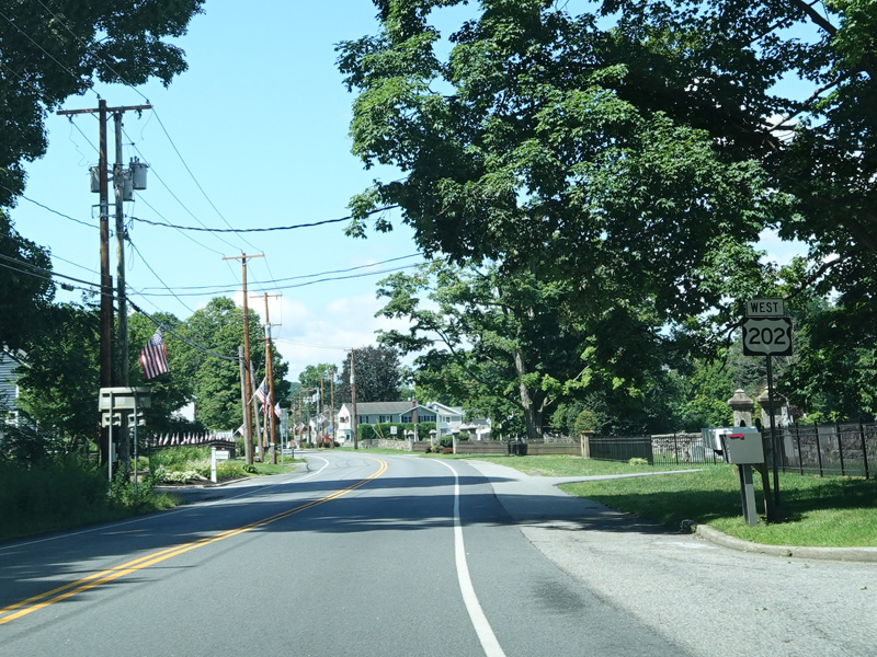 The two routes split. Bear right to stay on US 202. Bear left for NY 22. The signage here erroneously marked US 202 as NY 202.